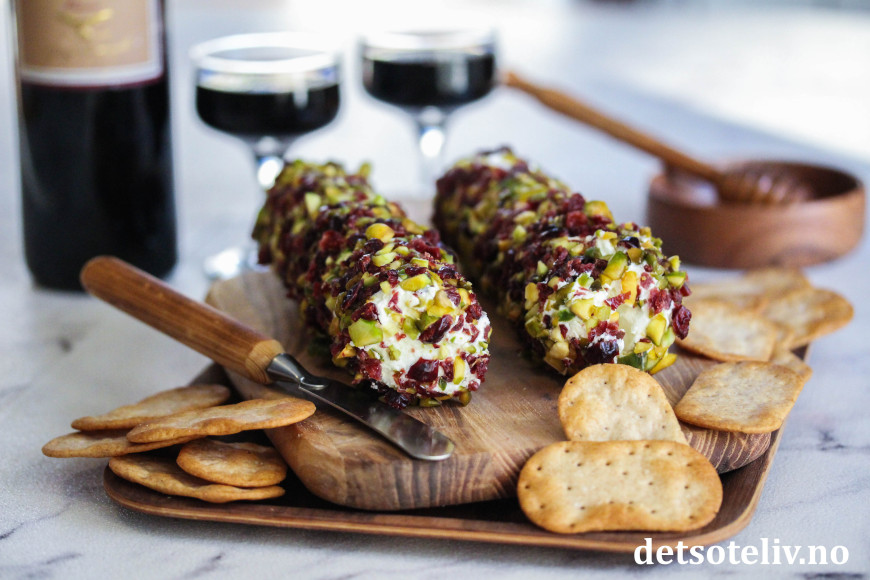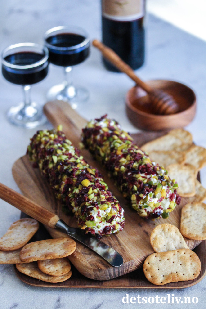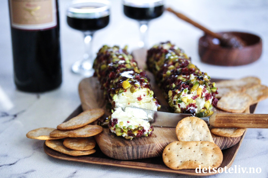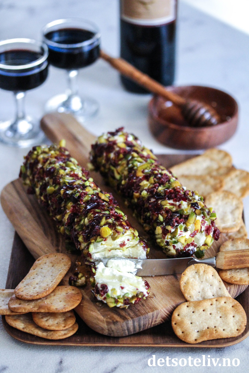 Et herlig og lettvint serveringstips i juletiden er chèvre som rulles i hakkede pistasjnøtter og tørkede tranebær. Dette gir en lekker, julete fargekombinasjon, og smakene passer fortreffelig sammen.