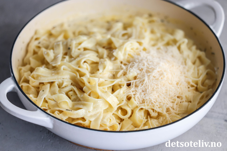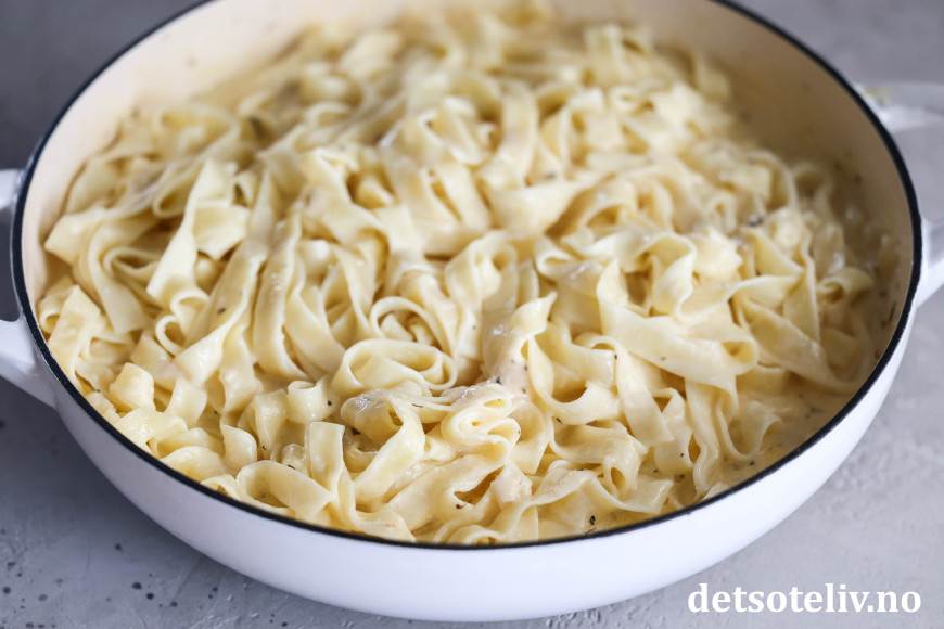 ♥ 500 g pasta (gjerne fettuccine, se tips)
