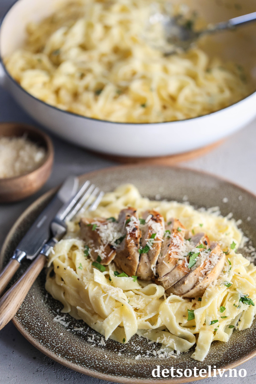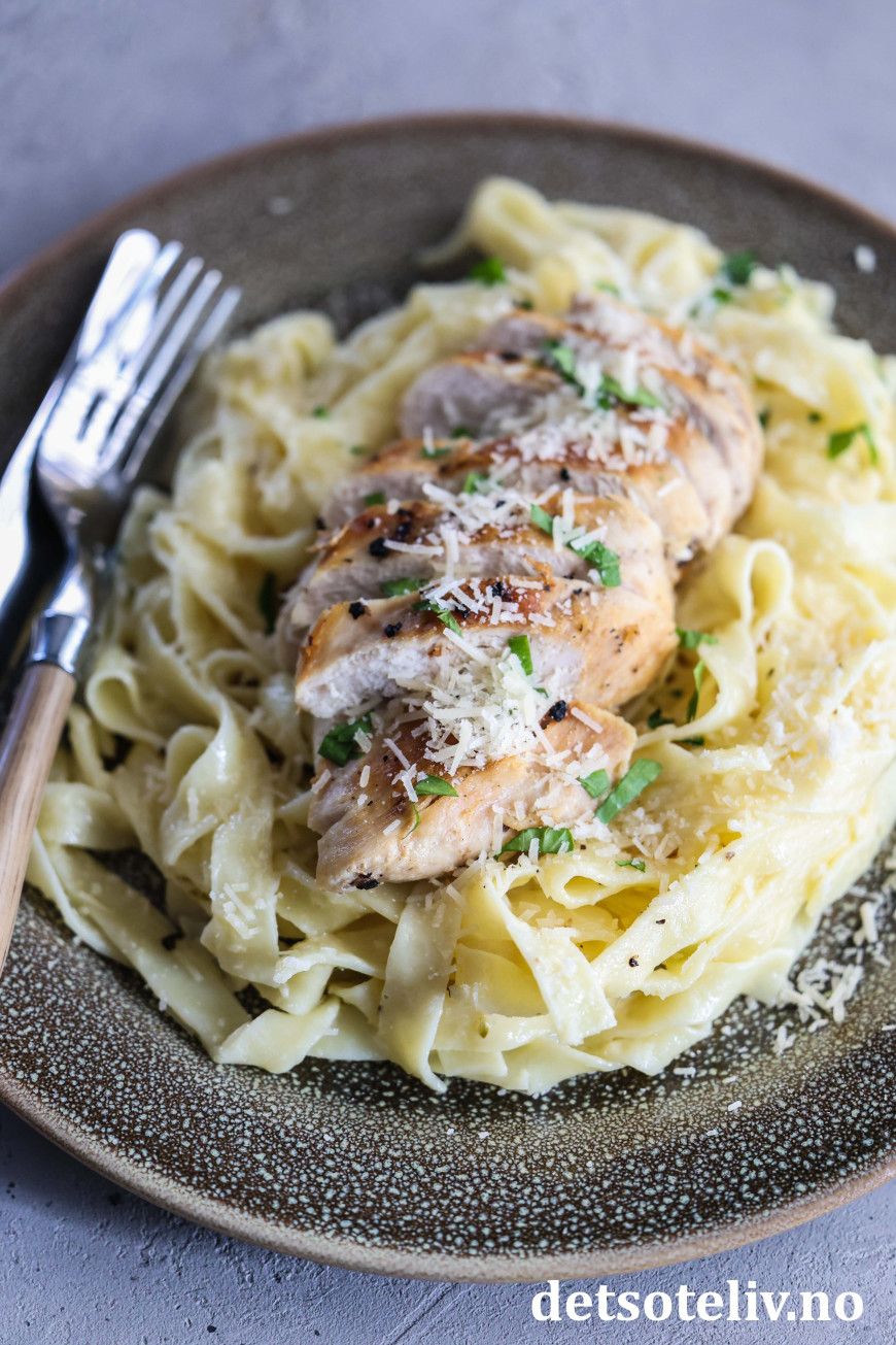 Chicken Alfredo er en amerikansk klassiker som er lett å lage hjemme!