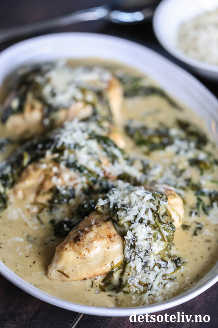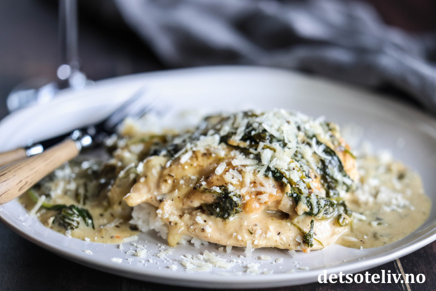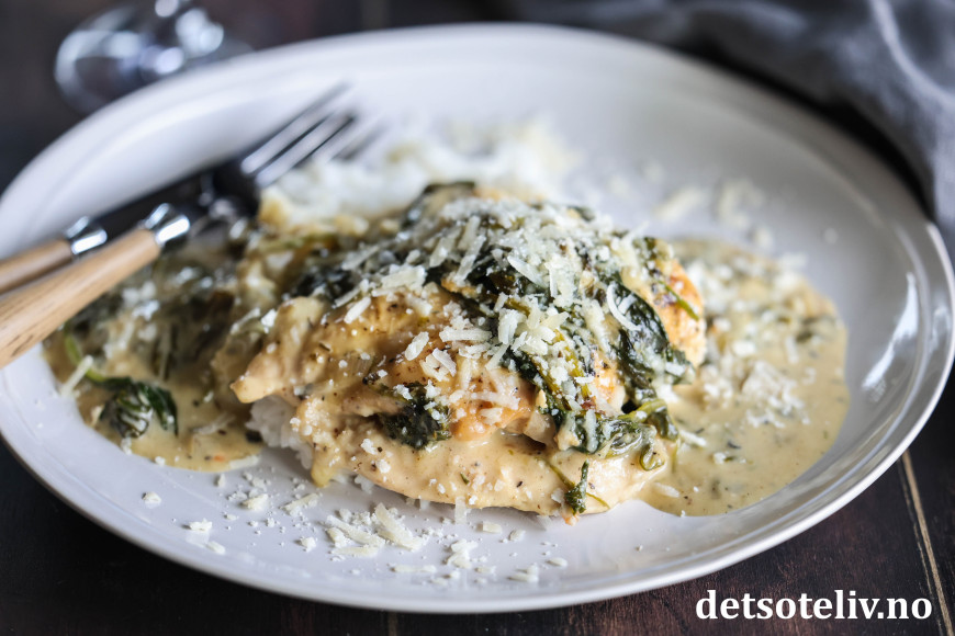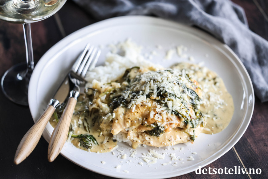 ♥ Chicken Florentine kan serveres med ris, men er også godt med pasta eller potetmos.
