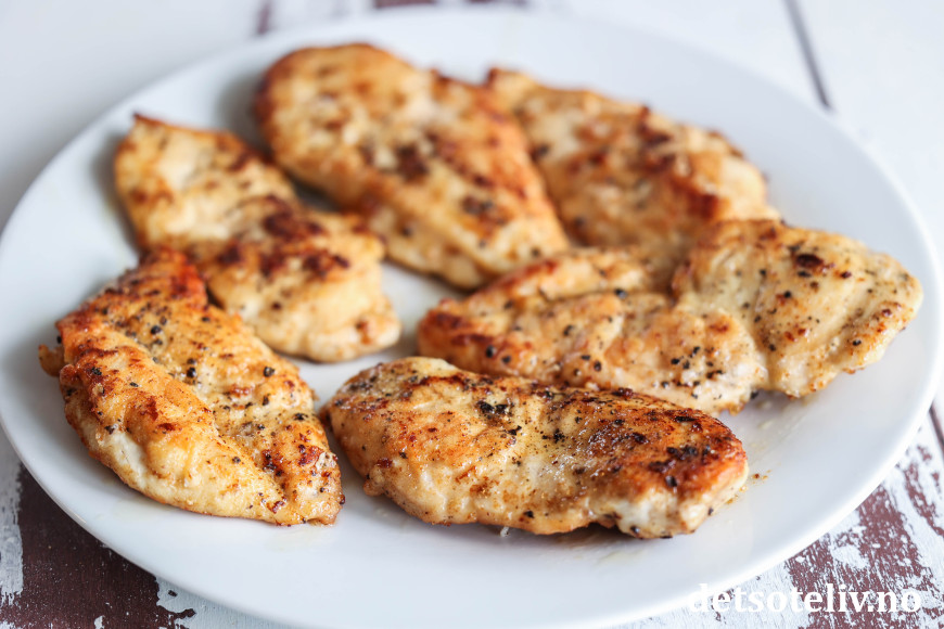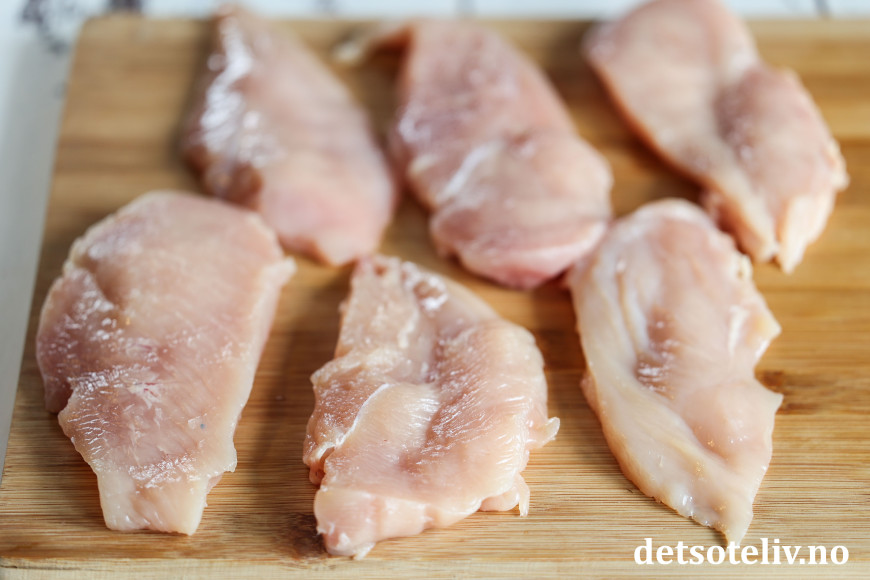 Gjør alle kyllingfiletene klare før du starter stekingen.