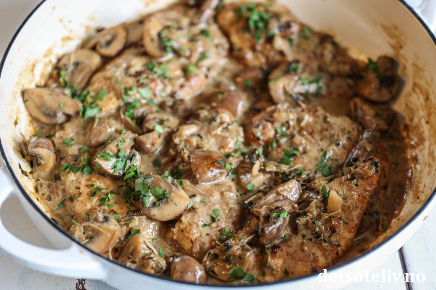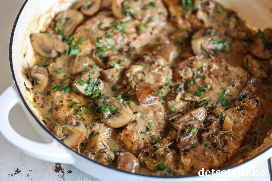 ♥ Tilpass tykkelsen på sausen. Hvis du synes den er for tynn, er det bare å la retten småkoke i noen minutter ekstra uten lokk. Dersom du synes at sausen har blitt for tykk (og merk at den kommer til å tykne dersom du venter med å servere retten og så vil varme den opp igjen), kan du spe den med litt ekstra vann, kraft, fløte - eller Marsala. 😊