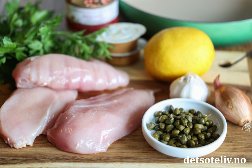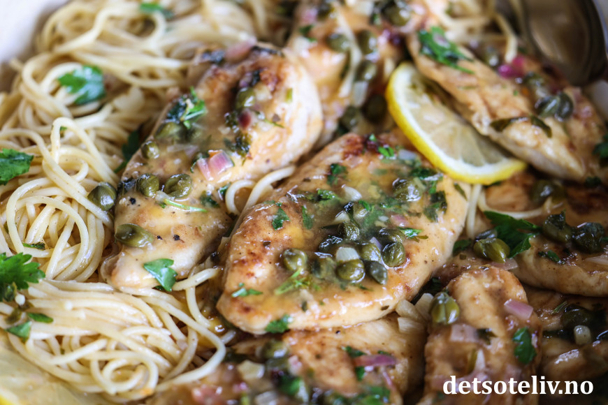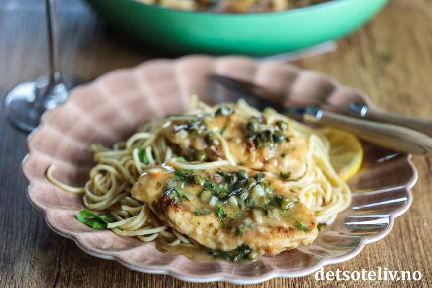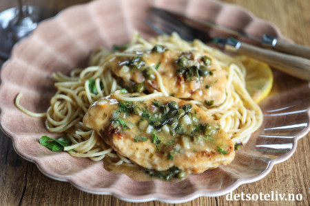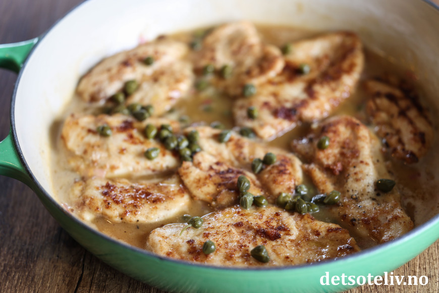 NB! Dersom du ikke liker kapers, er ikke denne retten noe for deg. Anbefaler deg da heller å lage Chicken Francese, som er nokså lik, men uten kapers. 😃