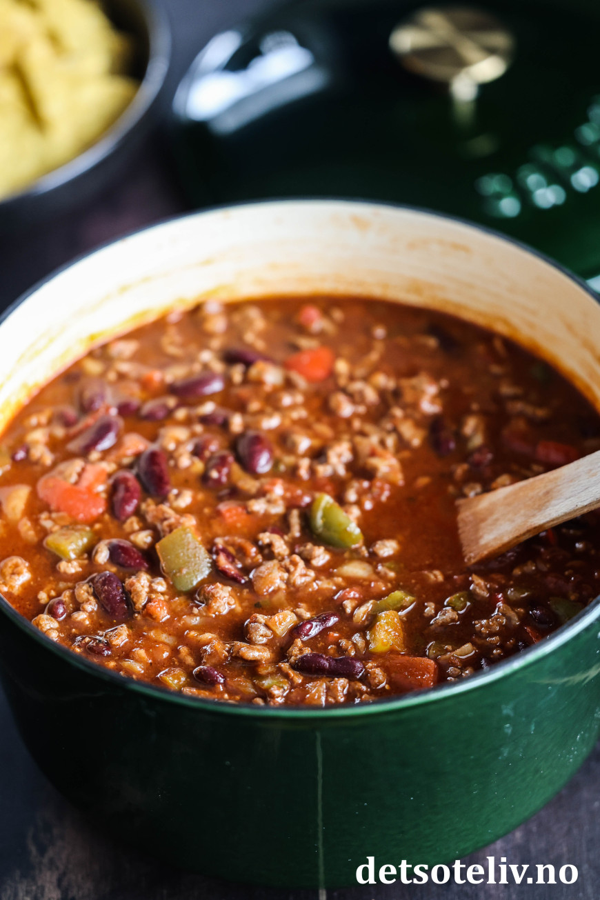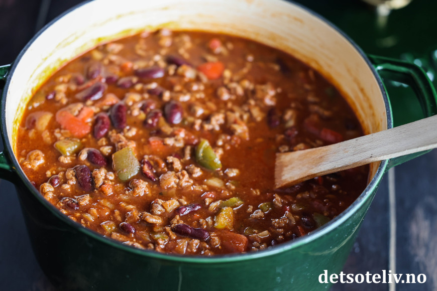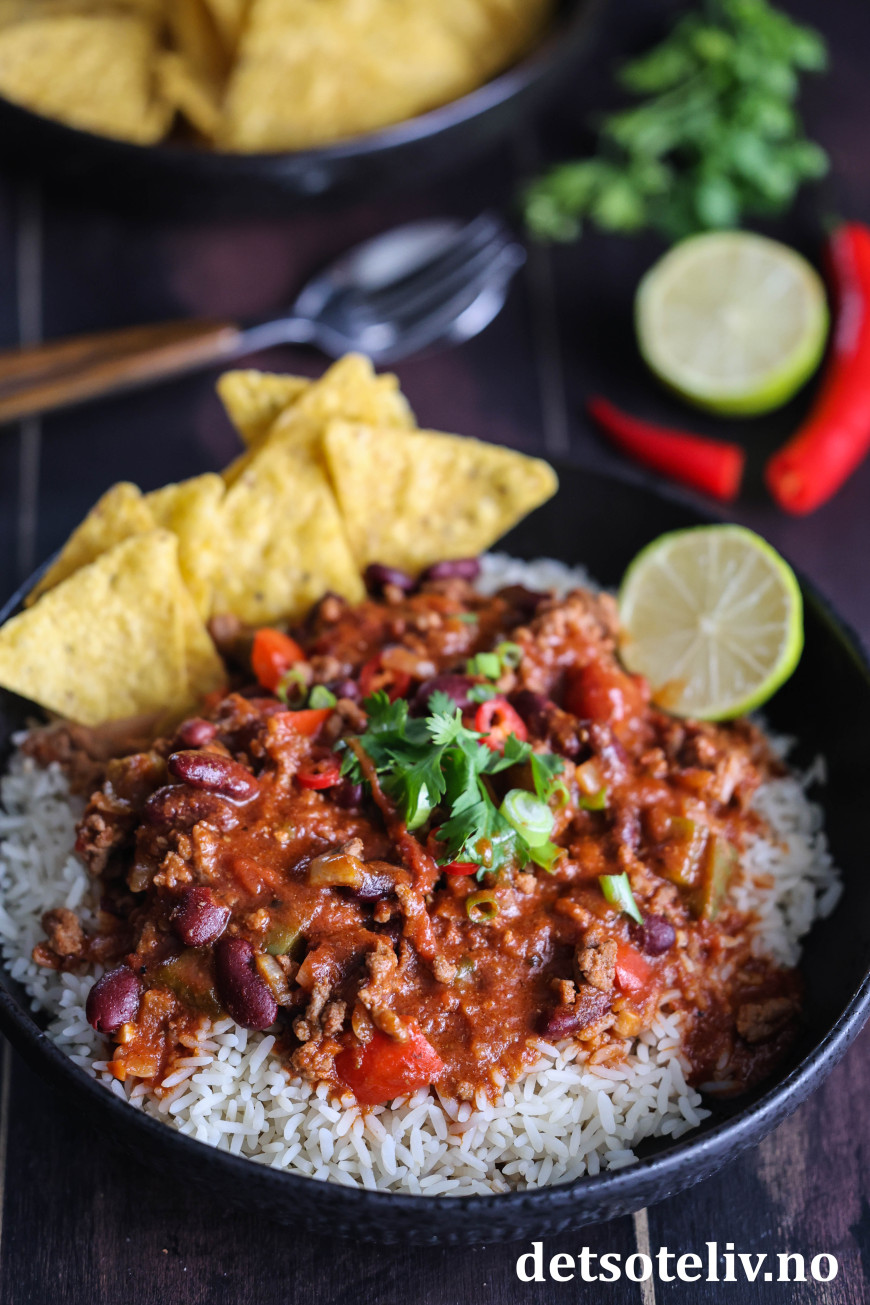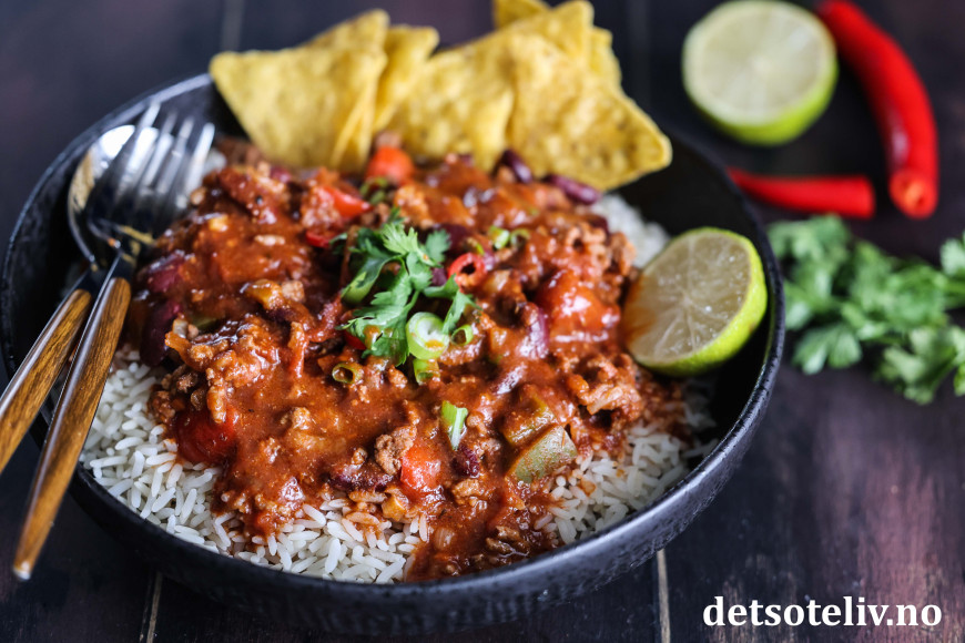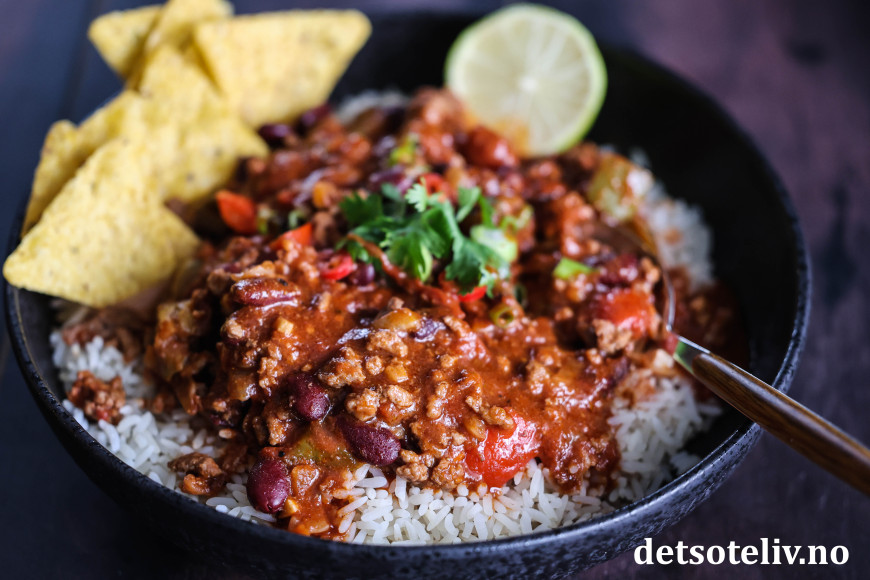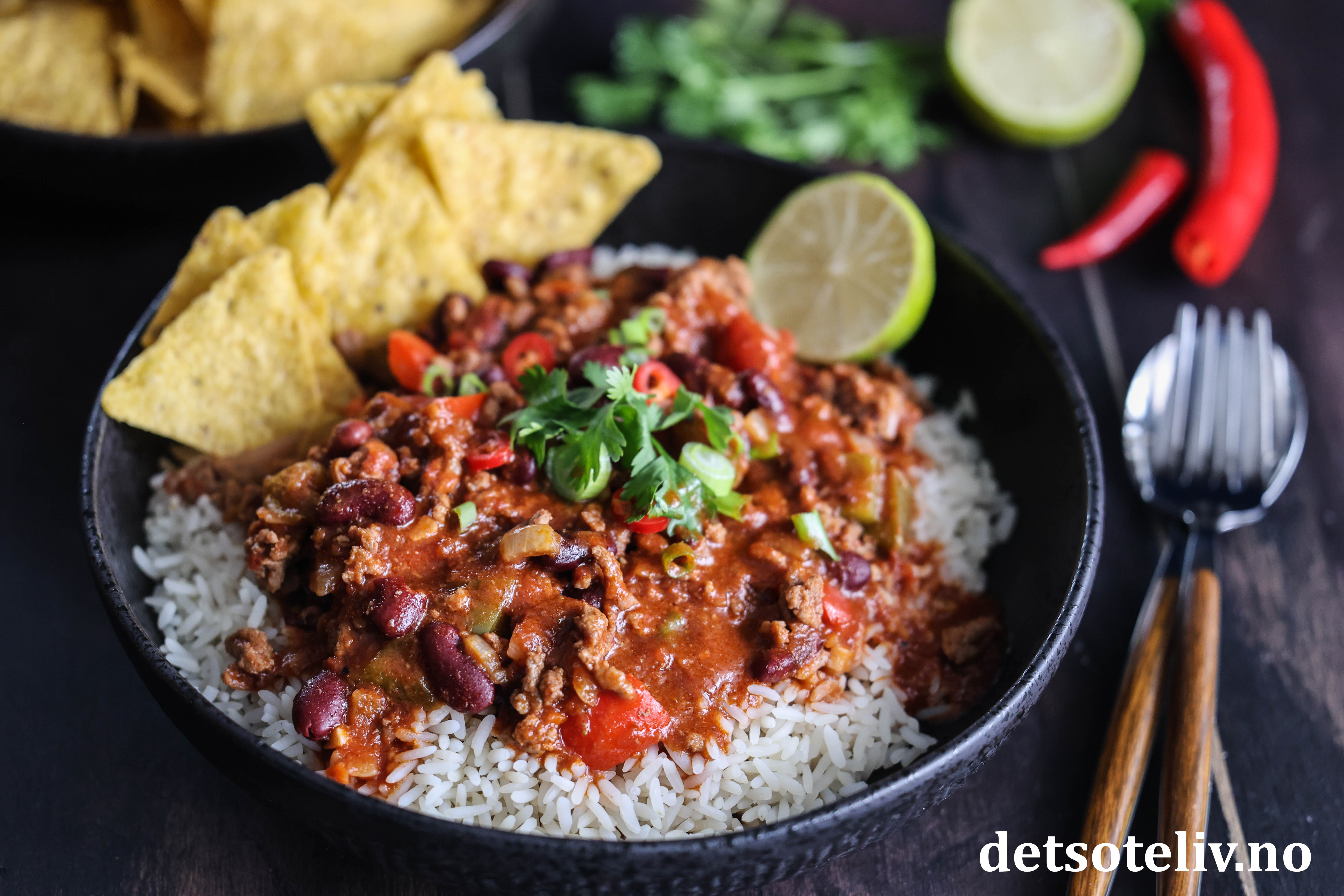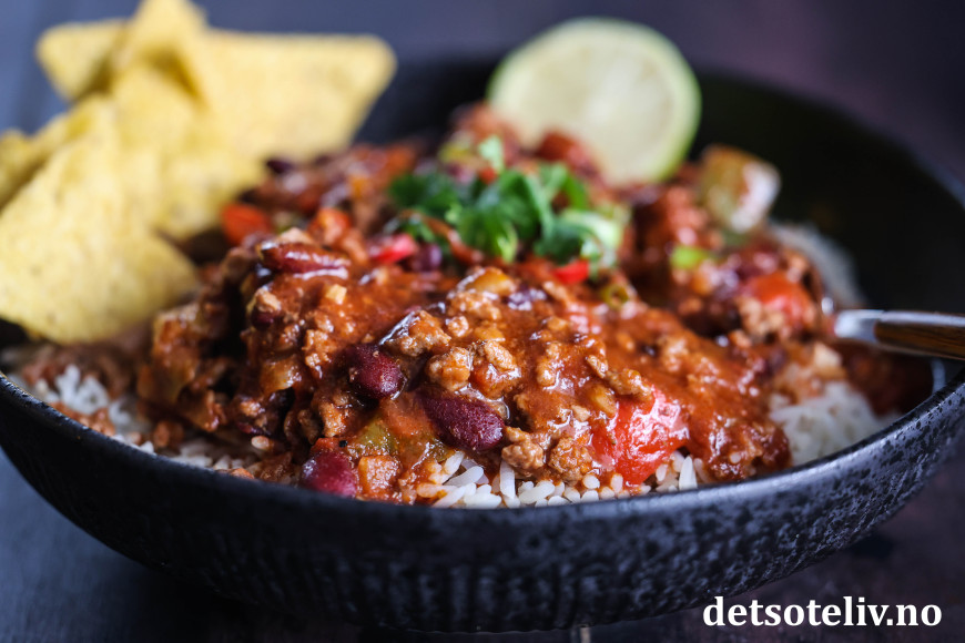 Chili con carne er populært å servere enten det er hverdag eller fest!
