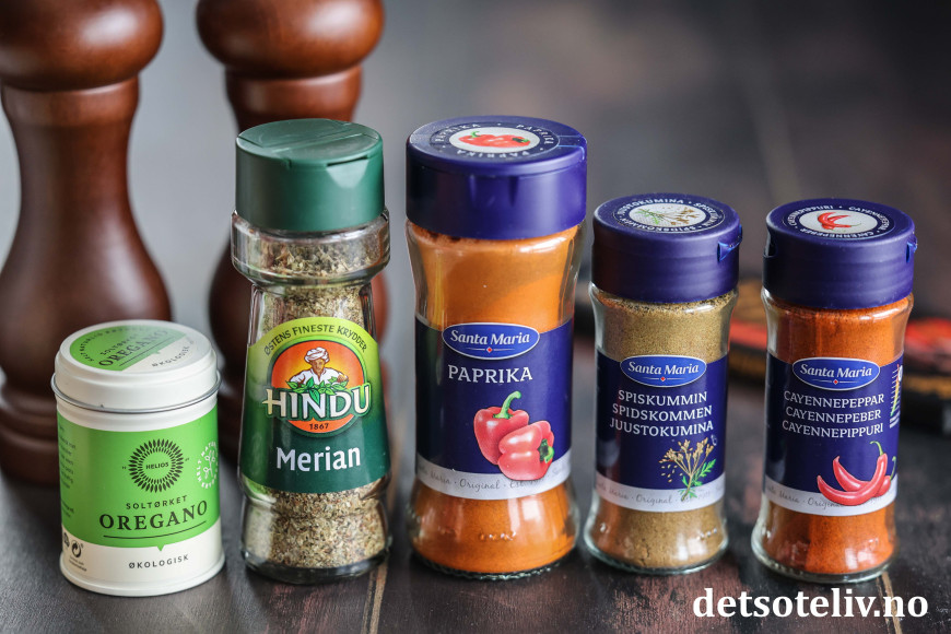 ♥ Krydderet fås kjøpt i de fleste matbutikkene. Tilpass mengden kajennepepper (eller chilipulver) og fersk chili ut fra hvor sterk du liker maten.