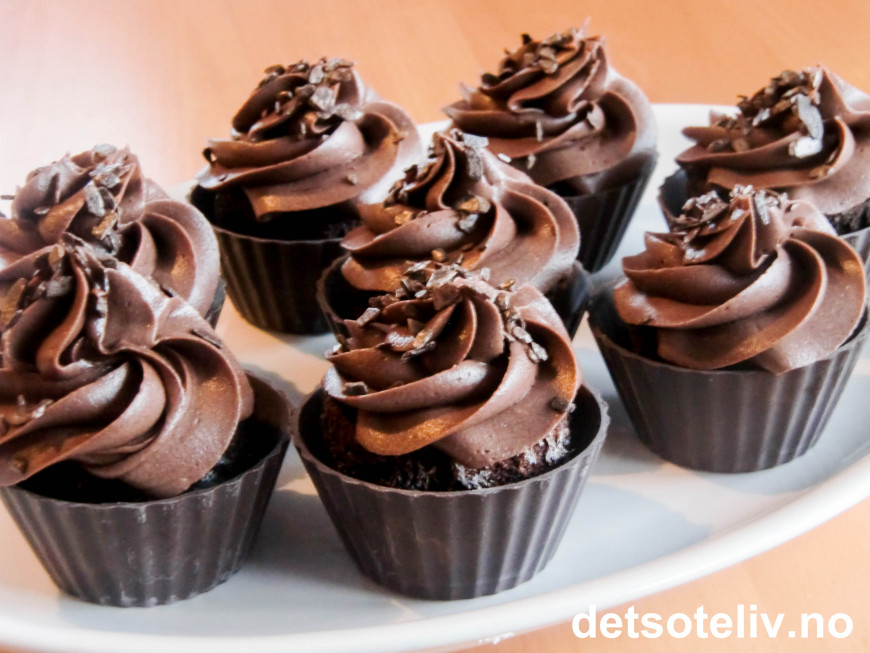 For å få riktig konsistens på sjokoladekremen, må sjokoladefløten stå i kjøleskapet et par timer. Konsistensen skal da være som en tykk, flytende kald sjokoladefløte. Sjokoladefløten må ikke stå i kjøleskapet for lenge og absolutt ikke over natten, for da blir den alt for fast og sjokoladekremen tørr. Uansett må du være nøye på å ikke piske for mye. Sjokoladefløten blir veldig fort til en tykk nok krem som kan sprøytes på cupcakesene.