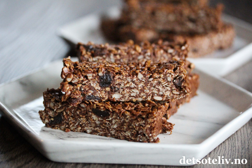 "Chocolate Granola Bars" oppbevares i kjøleskapet. Da har du alltid noe godt for hånden!