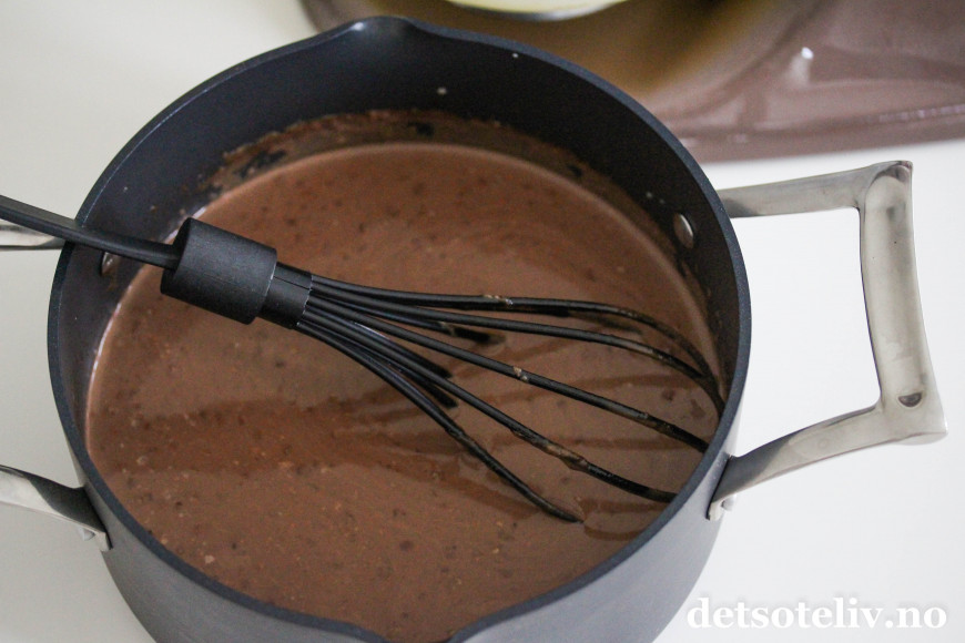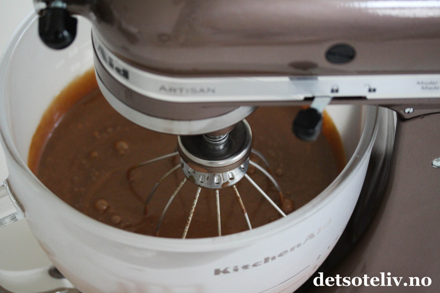 Pisk videre et par minutter så du får en tykk og kremete sjokoladeblanding.