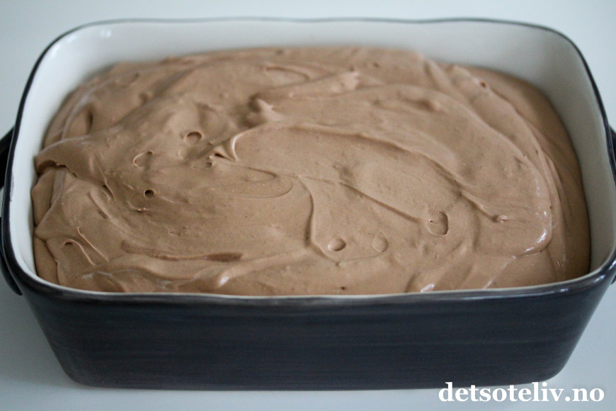 Hell deretter i den avkjølte sjokoladeblandingen.