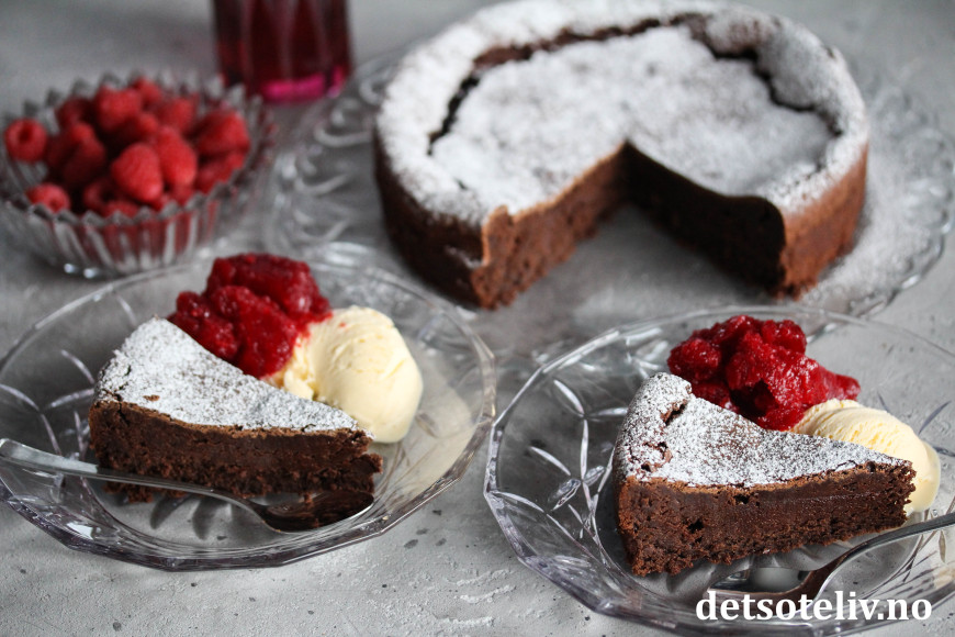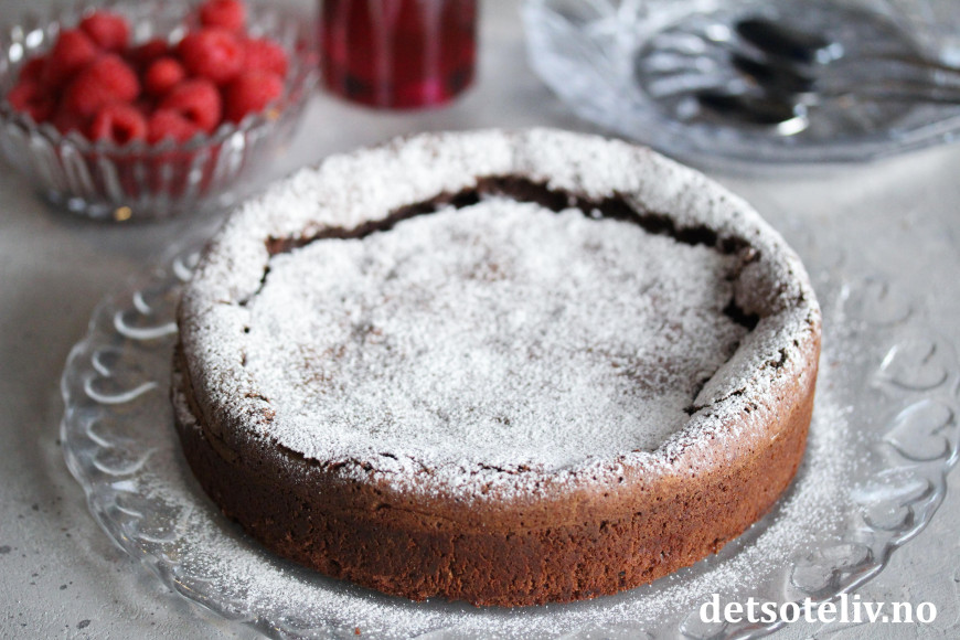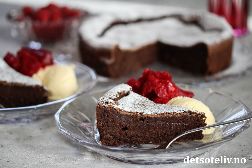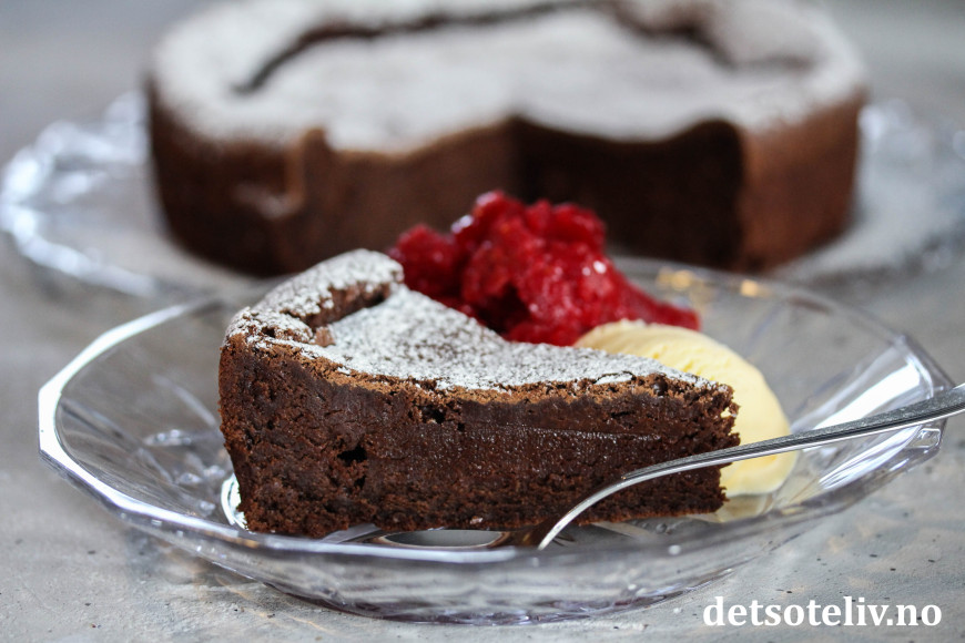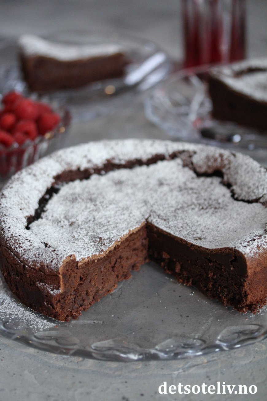 Dette er en sjokoladekake som lages med kun 4 ingredienser og som er helt uten hvetemel. Kaken får en nydelig bløt og kremete konsistens, og deilig rik sjokoladesmak.