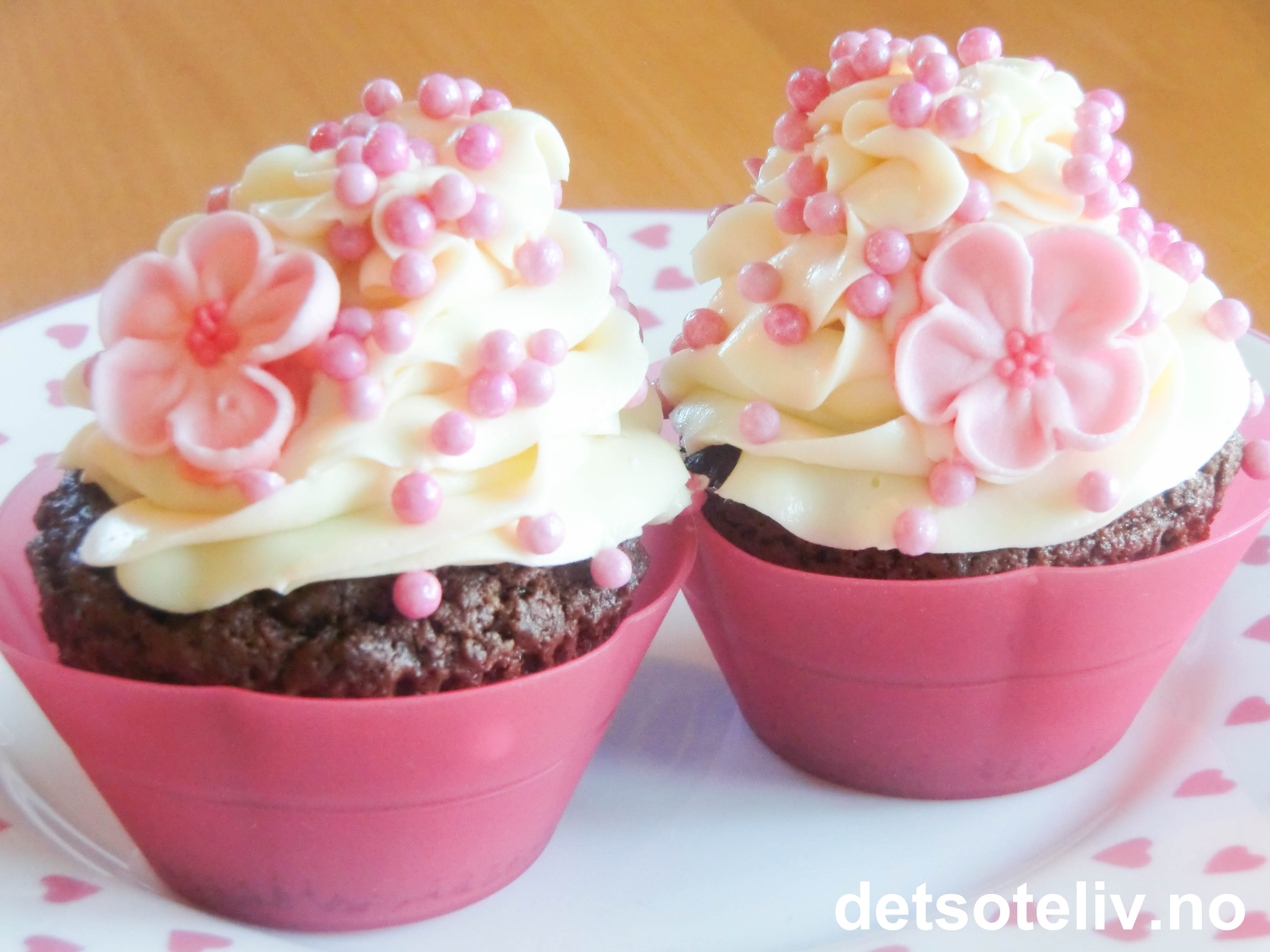 Se også "Hvit sjokoladefluff cupcakes" som er vaniljecupcakes med den samme gode, hvite sjokoladekremen!