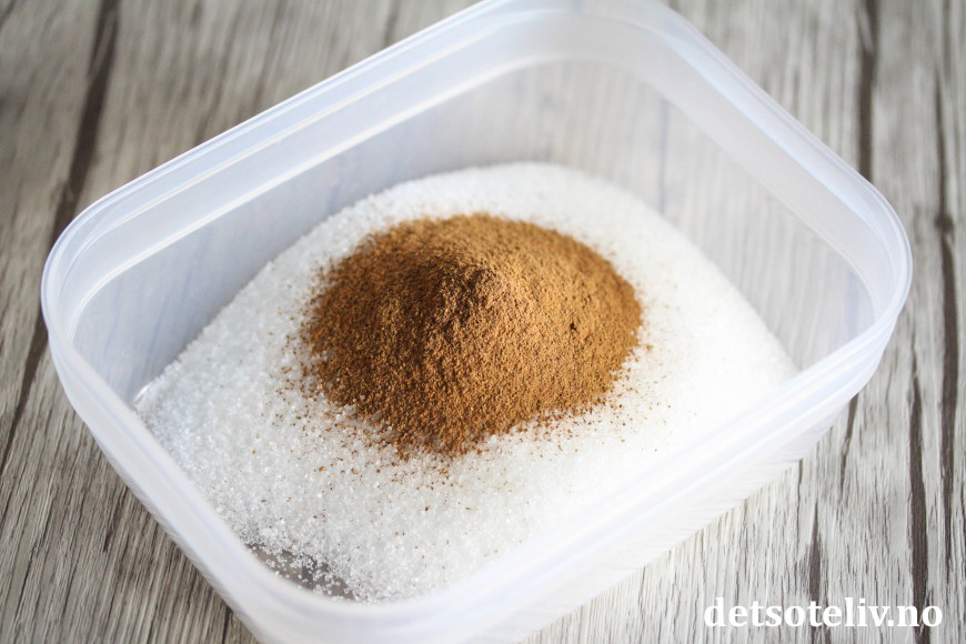 Rett etter at kakene er ferdigstekte, drysses de med melis eller vendes i kanelsukker.