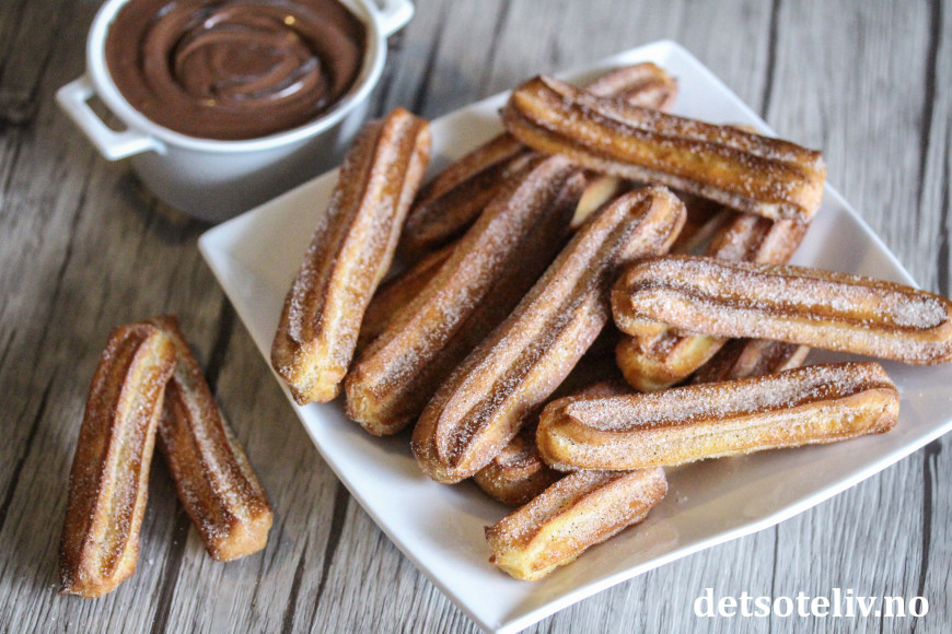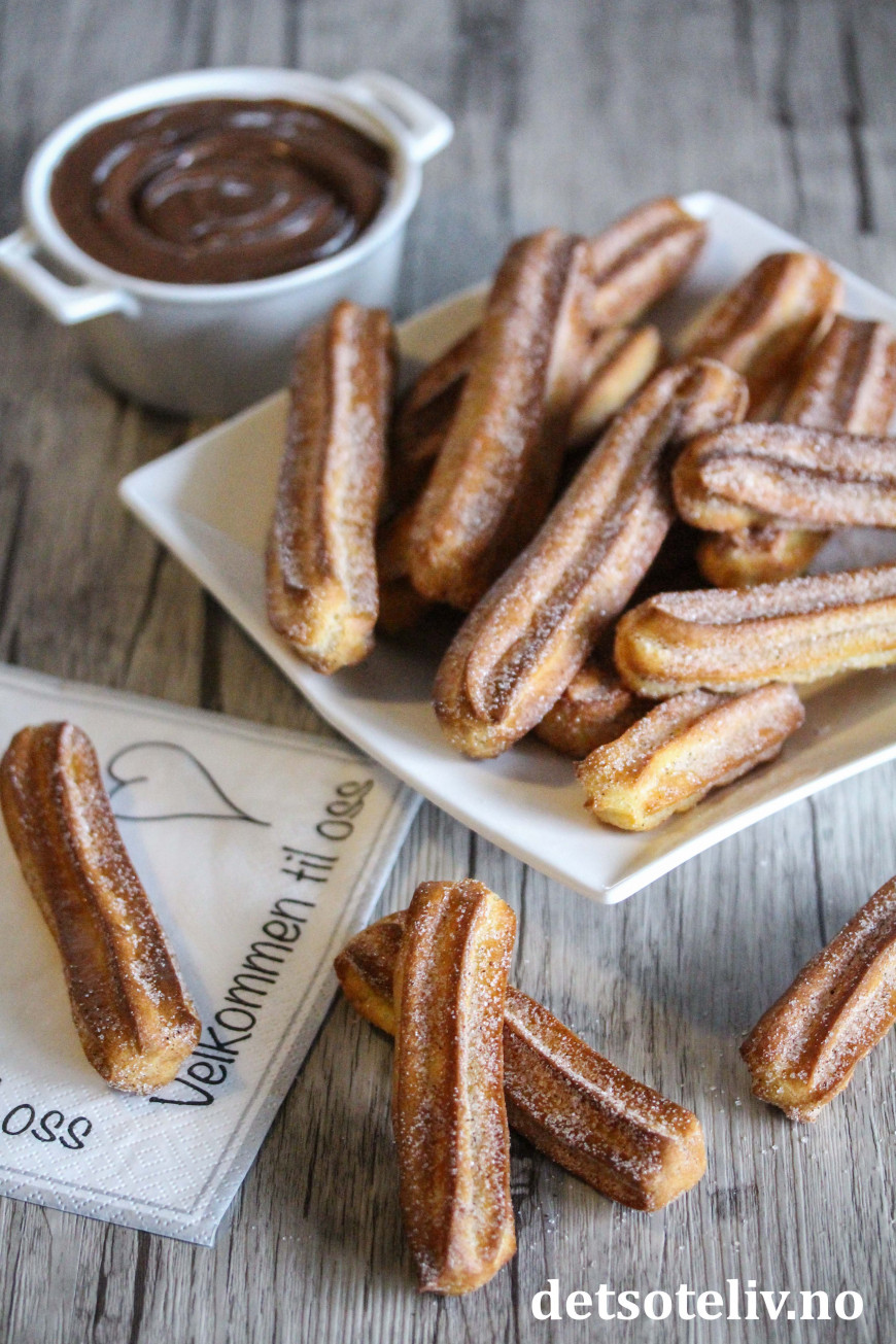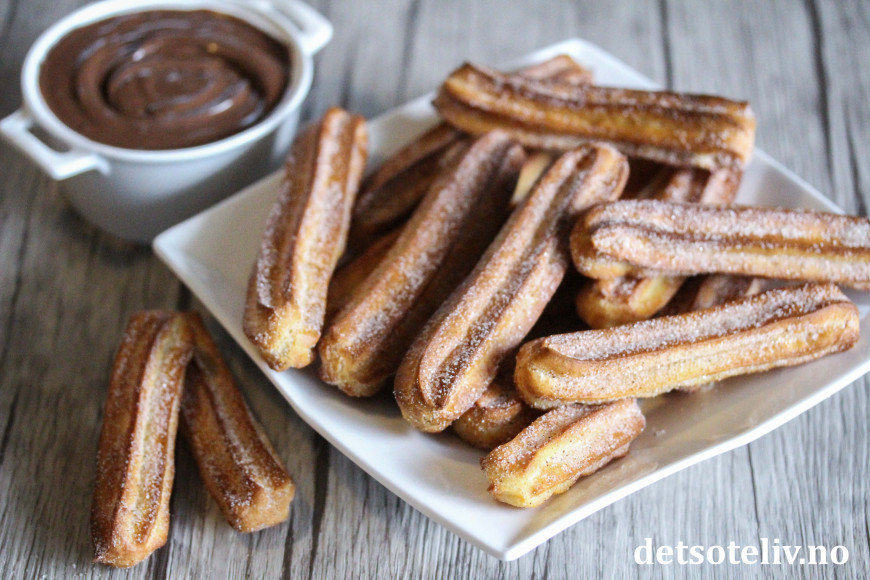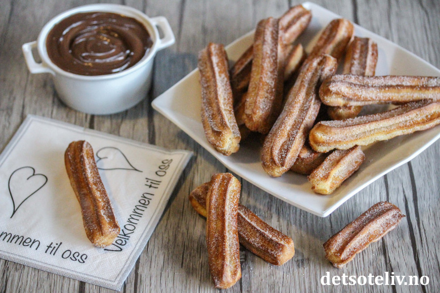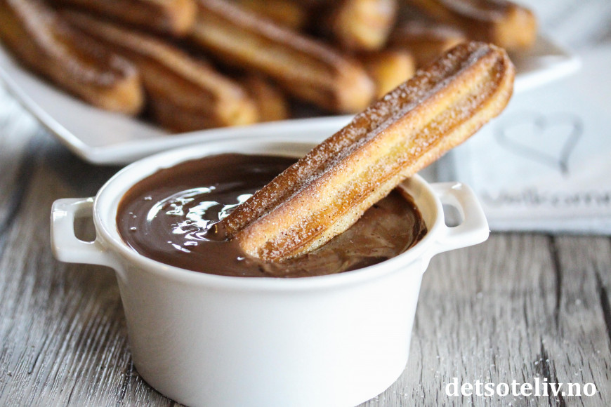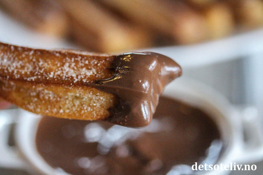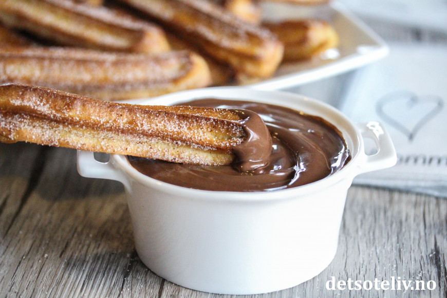 Det er populært å dyppe Churros i sjokoladesaus. En superenkel og digg vri er å bruke Nutella.