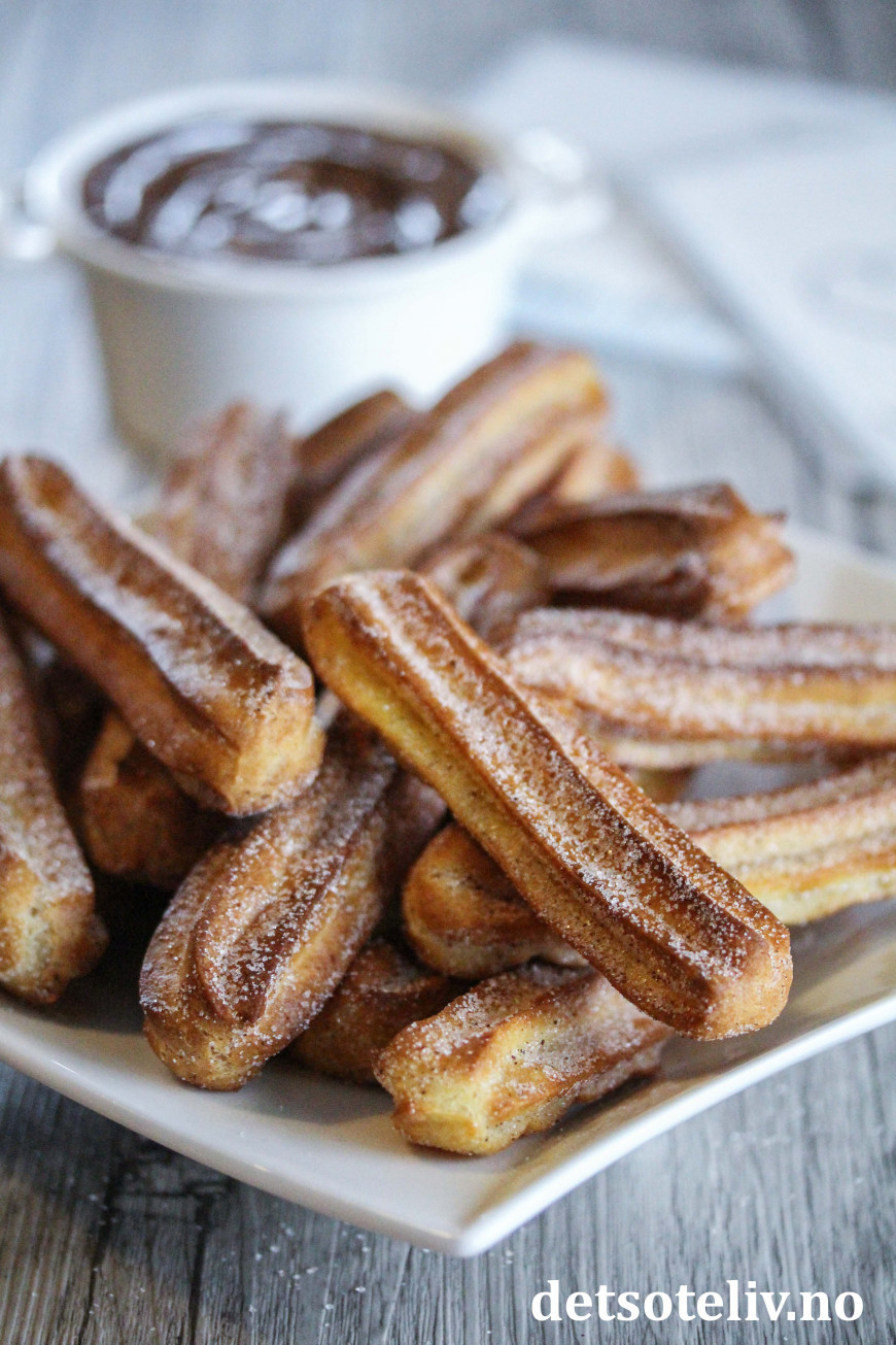 Churros er en spansk spesialitet, som består av vannbakkelsdeig som tradisjonelt frityrstekes i olje. Den deilige baksten kan drysses med melis eller rulles i kanelsukker, og dyppes gjerne i sjokoladesaus.