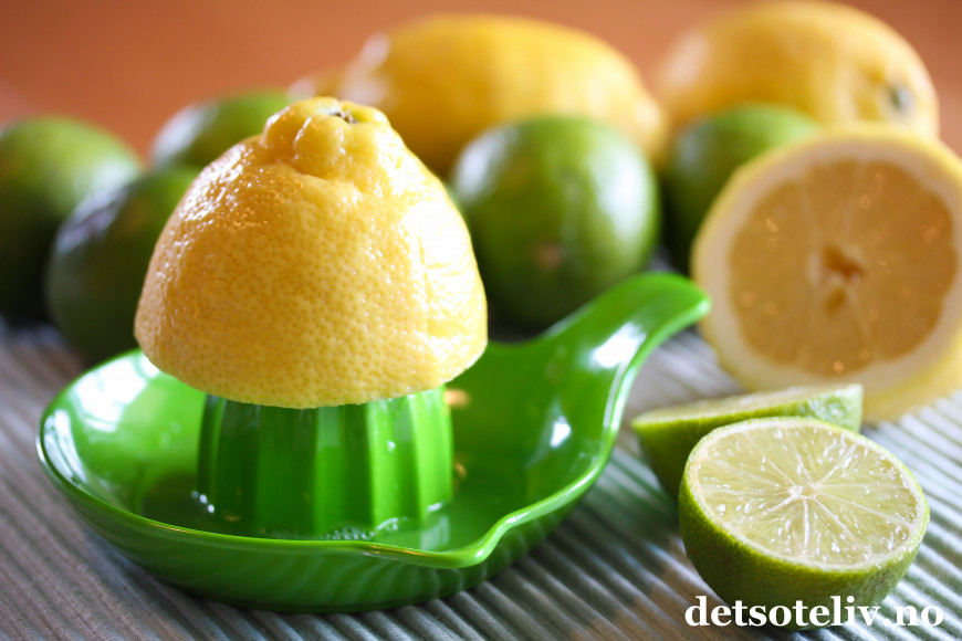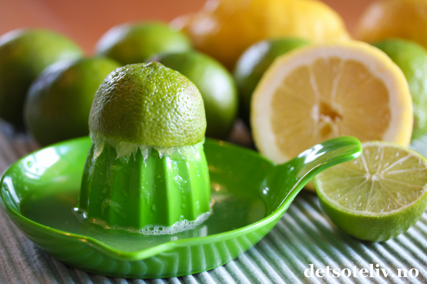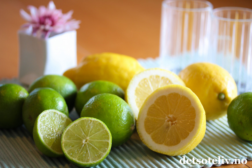 Det er vanligst å bare bruke sitroner, men jeg synes det er godt med et par lime i tillegg.