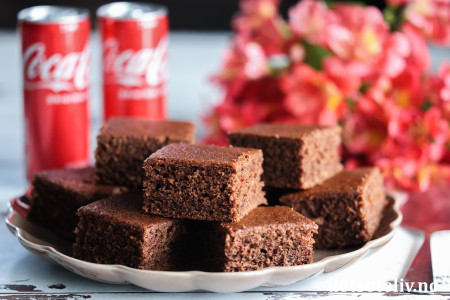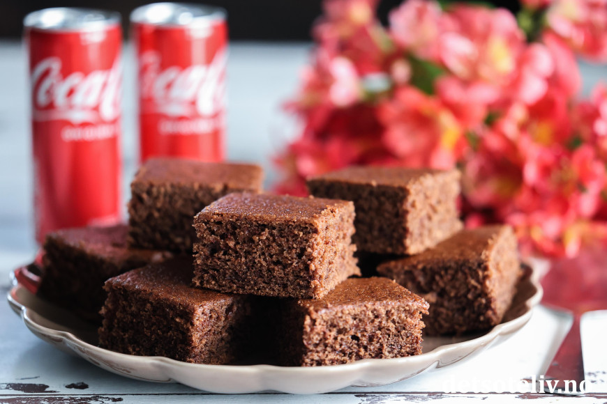 Pisk egg og sukker luftig. Smelt smøret i en liten kjele. Bland med Coca-Cola. Sikt sammen de tørre ingrediensene. Rør alt sammen til en jevn og klumpfri deig.