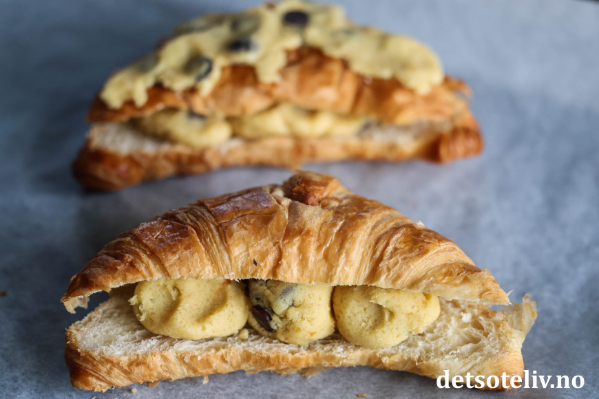 De har kanskje latt seg inspirere av populære Brookies, som er en kombinasjon av brownies og cookies. Ellers er jo fylte croissanter med mandelfyll (Mandelcroissanter) eller pistasjfyll (Croissanter med pistasjkrem), veldig vanlige i franske bakerier. Her er croissantene altså fylte med cookiedeig i stedet.