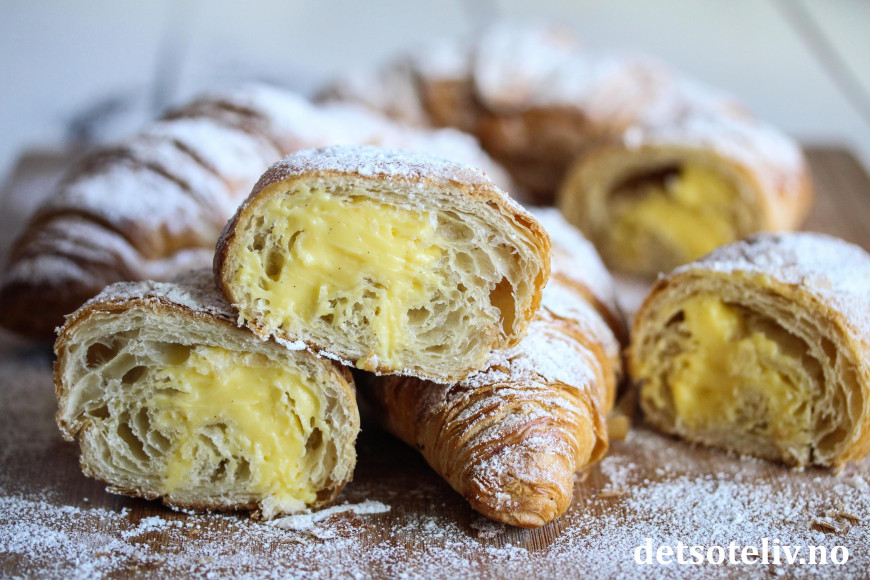 ♥ Lyst til å lage enkle Croissanter med fyll? Se Mandelcroissanter (Croissants aux amandes) og Croissanter med pistasjkrem.
