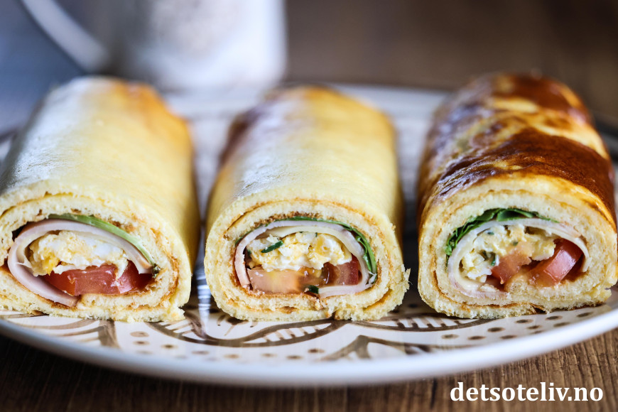 Denne versjonen her er fylt med skinke, ost og eggerøre, og er sånn sett inspirert av "Pimpens frokost" som også gikk viralt i sosiale medier i fjor. "Pimpen" er kallenavnet til influenser Isabel Raads mor, og hun ble kjent for å lage en frokostwrap til sin datter av Libabrød og tilsvarende fyll.