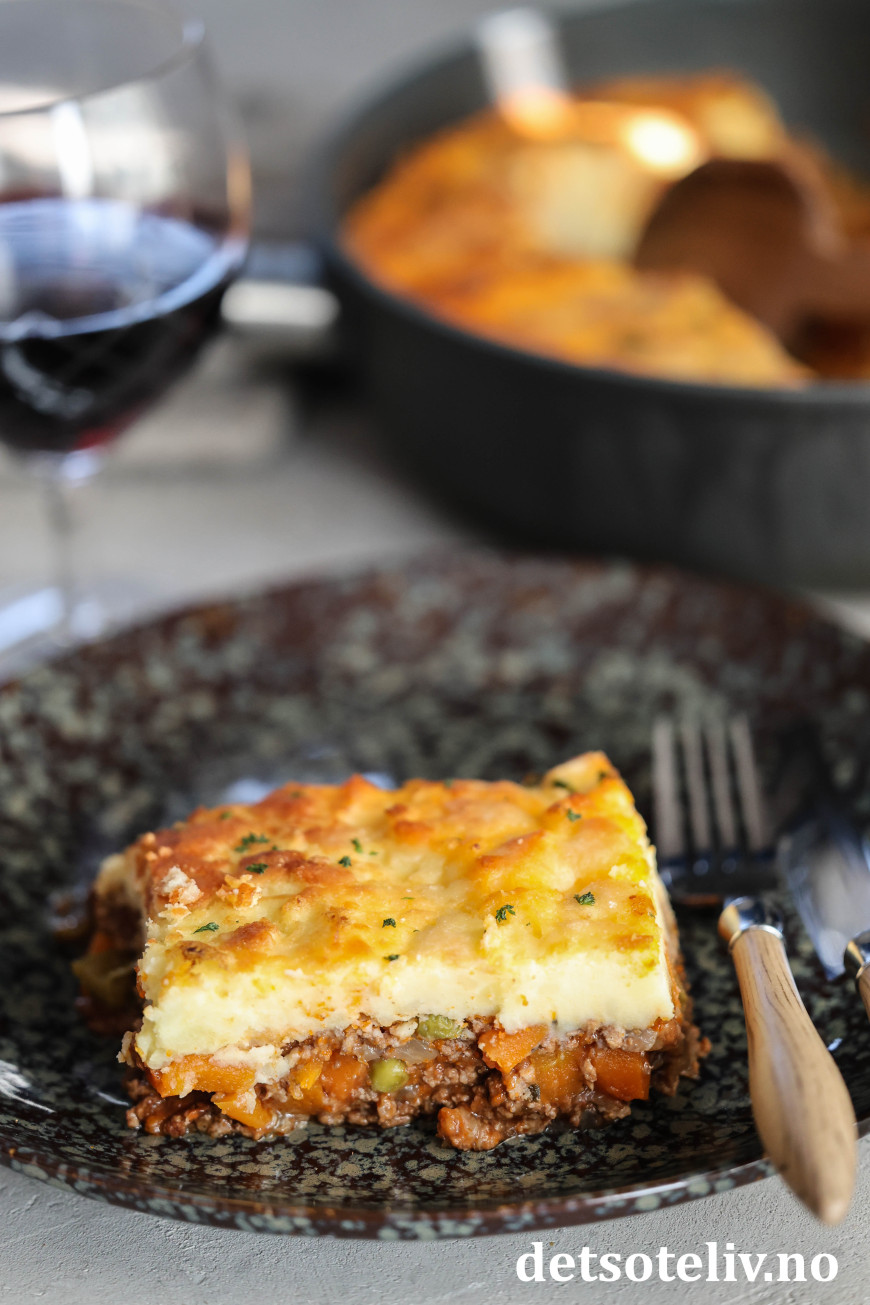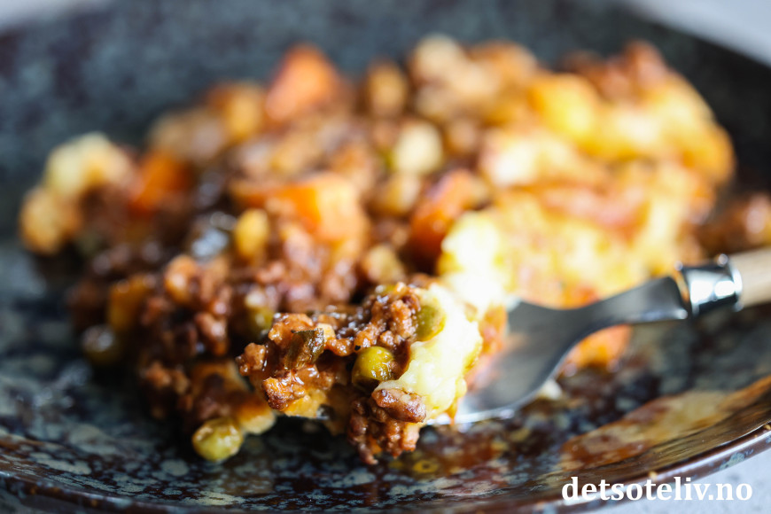 Jeg foretrekker å servere Cottage Pie varm og helt nylaget!