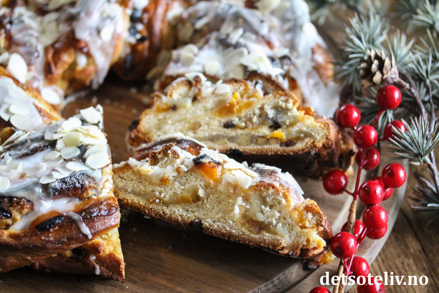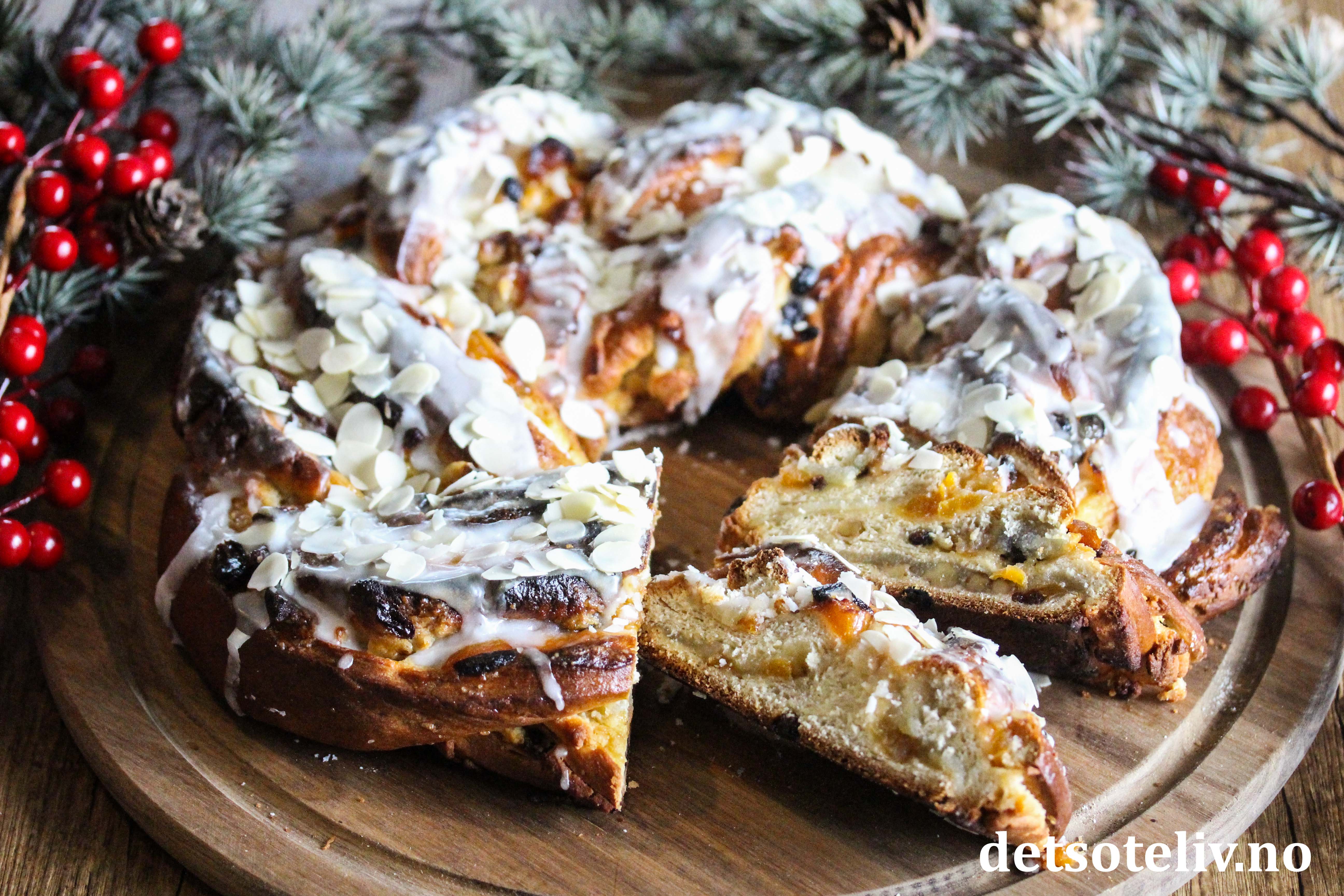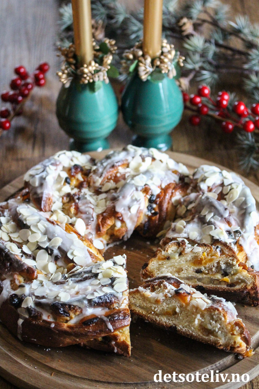 Couronne er en fransk, tvunnet julekrans, som er fylt med smørkrem, aprikos, rosiner, valnøtter og marsipan.