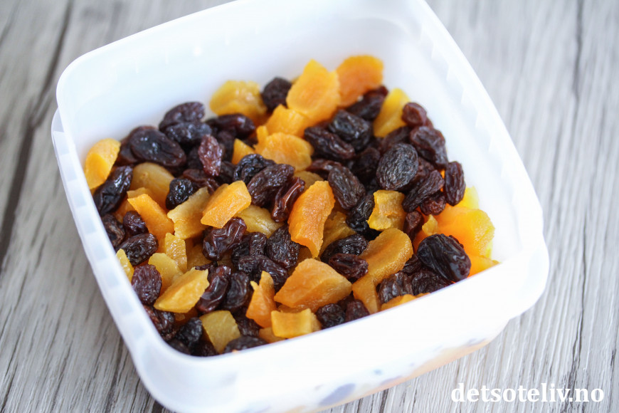 Mens deigen hever, kan du lage klart fruktfyllet. Skjær aprikosene i mindre biter og ha dem i en liten kjele sammen med rosiner, revet appelsinskall og appelsinsaft.