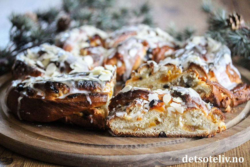 Bland mel, tørrgjær, sukker og vaniljesukker i bollen til en kjøkkenmaskin. Smelt smøret i en kjele. Tilsett melken og varm blandingen til den er lunken (fingervarm). Ha dette i bollen med det tørre i tillegg til lett sammenpisket egg. Elt deigen i kjøkkenmaskin i 10 minutter. Hev deigen i 1 time.