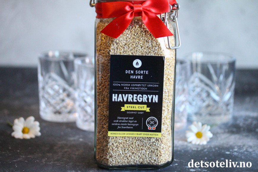 ♥ Tradisjonelt skal denne desserten lages med kuttet havre. Jeg bruker steel cut havregryn fra Den sorte havre, som er et fantastisk bra produkt!