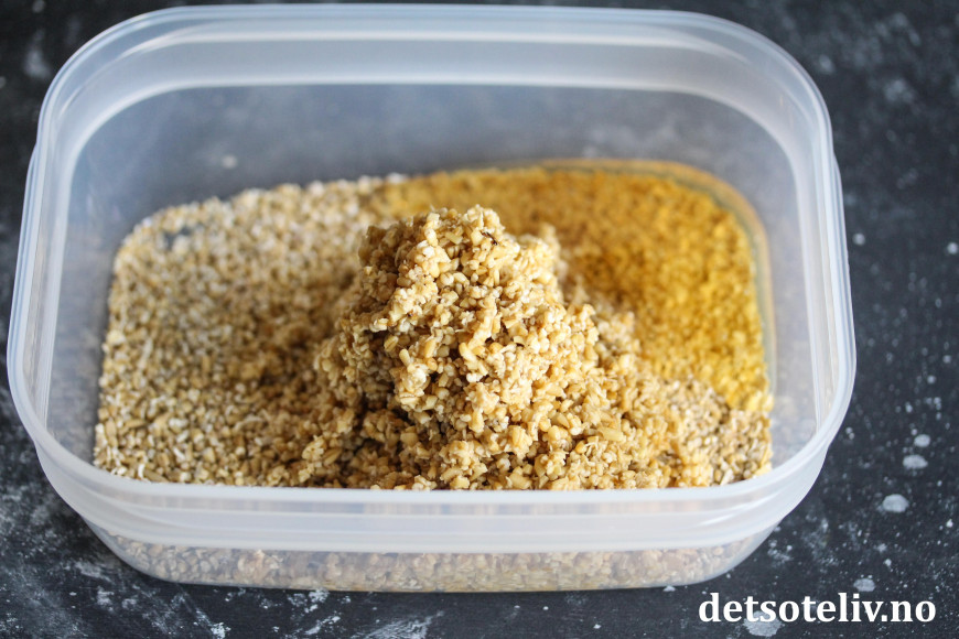 Dagen etter ristes resten av havren i tørr stekepanne. Bland dette så med den våte "whisky-havren" og honning.
