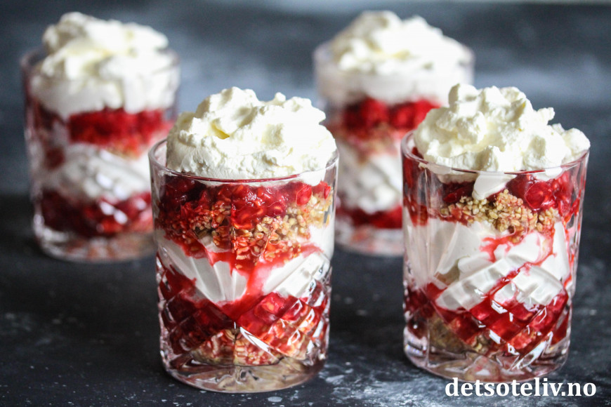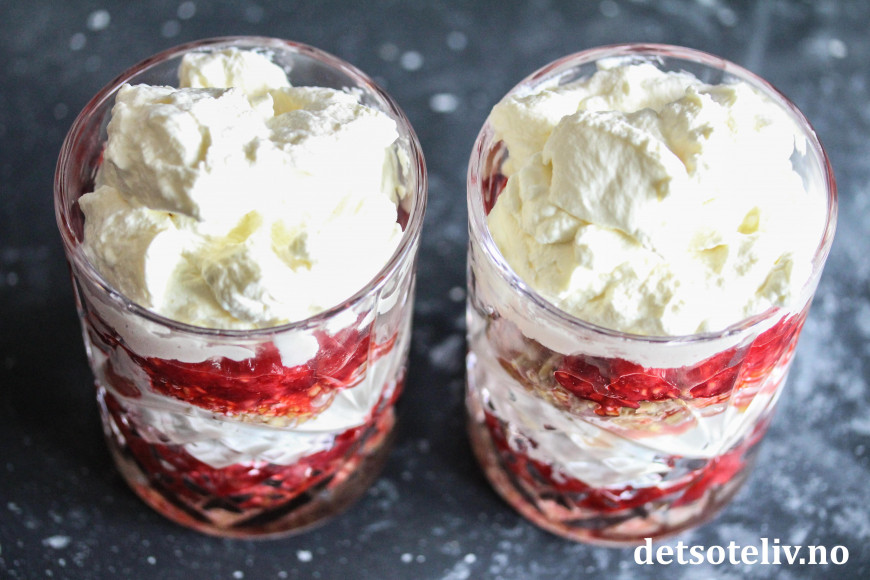 Sett desserten gjerne i kjøleskapet i et par timer før servering.