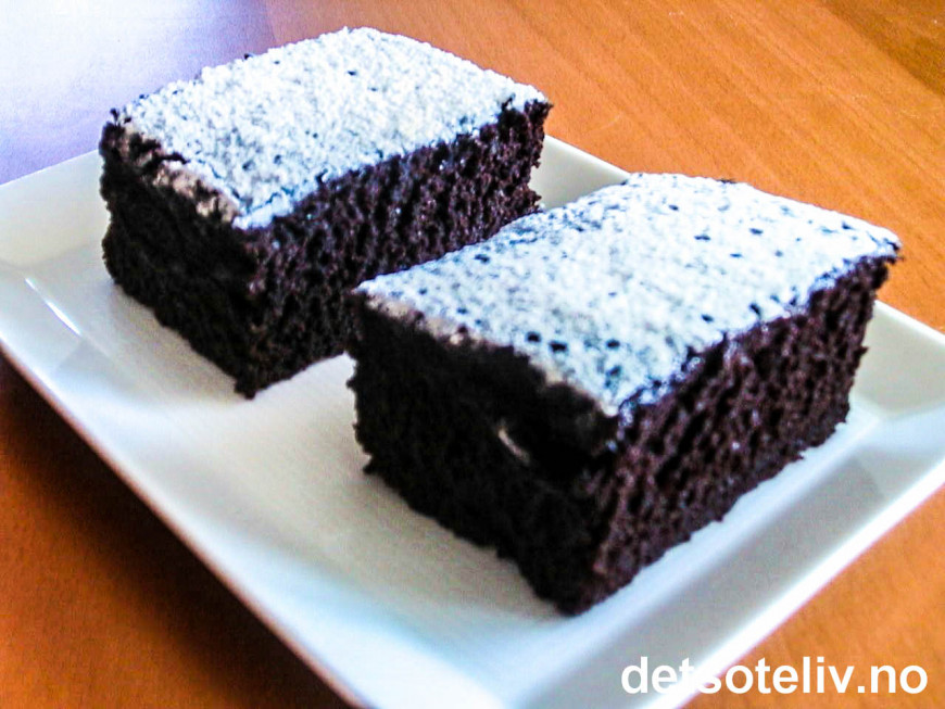 Det høres rart ut med eddik i en kake, men eddiken er nødvendig for at kaken skal få den rette konsistensen. Kaken smaker ABSOLUTT IKKE av eddik når den er stekt!