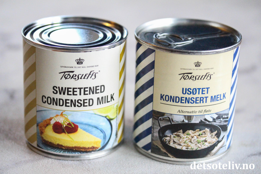 NB! Må ikke forvekslet med usøtet, kondensert melk, som også kjøpes på hermetikkboks. De to variantene pleier å stå ved siden av hverandre i butikkhyllene, så følg med at du velger riktig type.