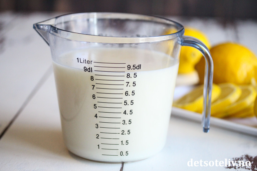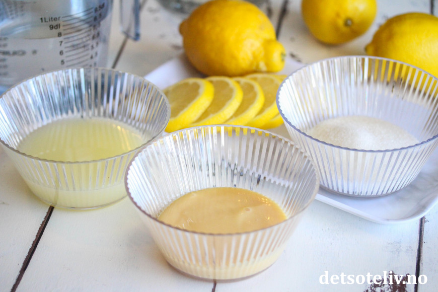 Press sitroner og mål opp 1,5 dl sitronsaft.
