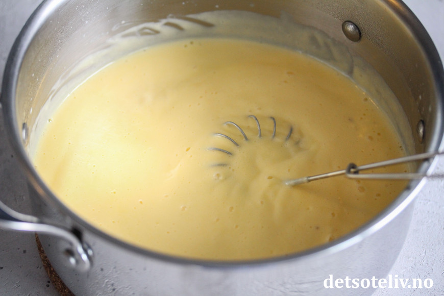 Varm opp på middels varme under stadig omrøring til du ser at kremen tykner.