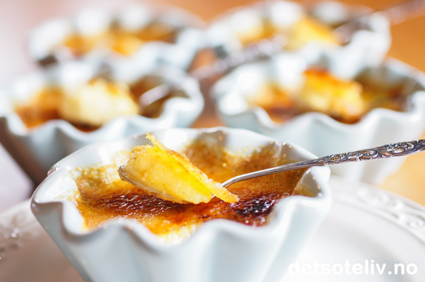 ♥ Crème brûlée kan smaksettes på ulike måter, se for eksempel Crème brûlée med pasjonsfrukt og Espresso Crème brûlée.