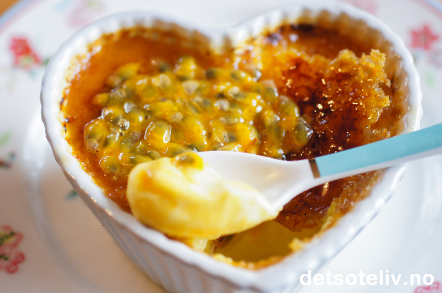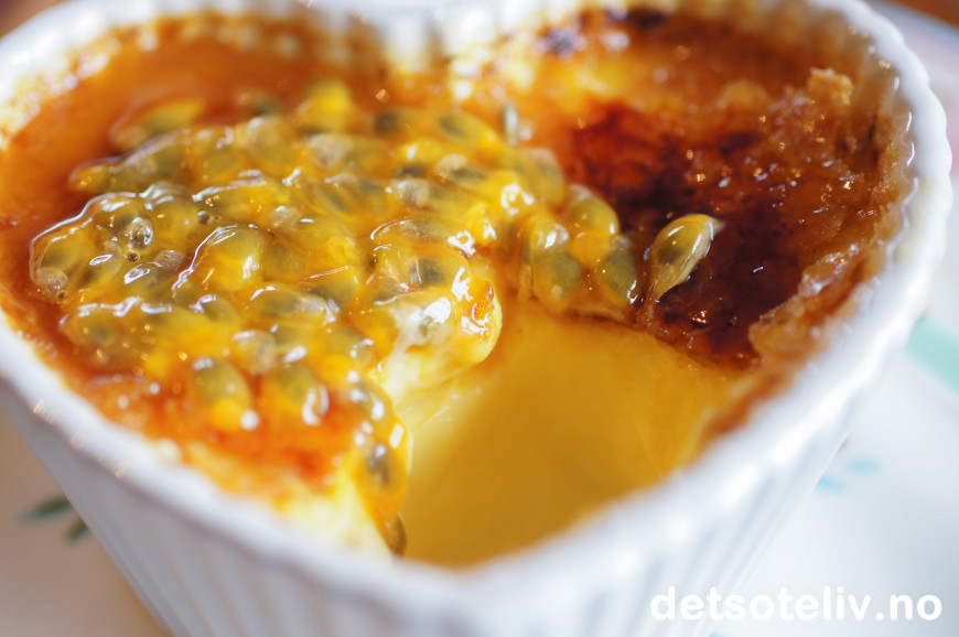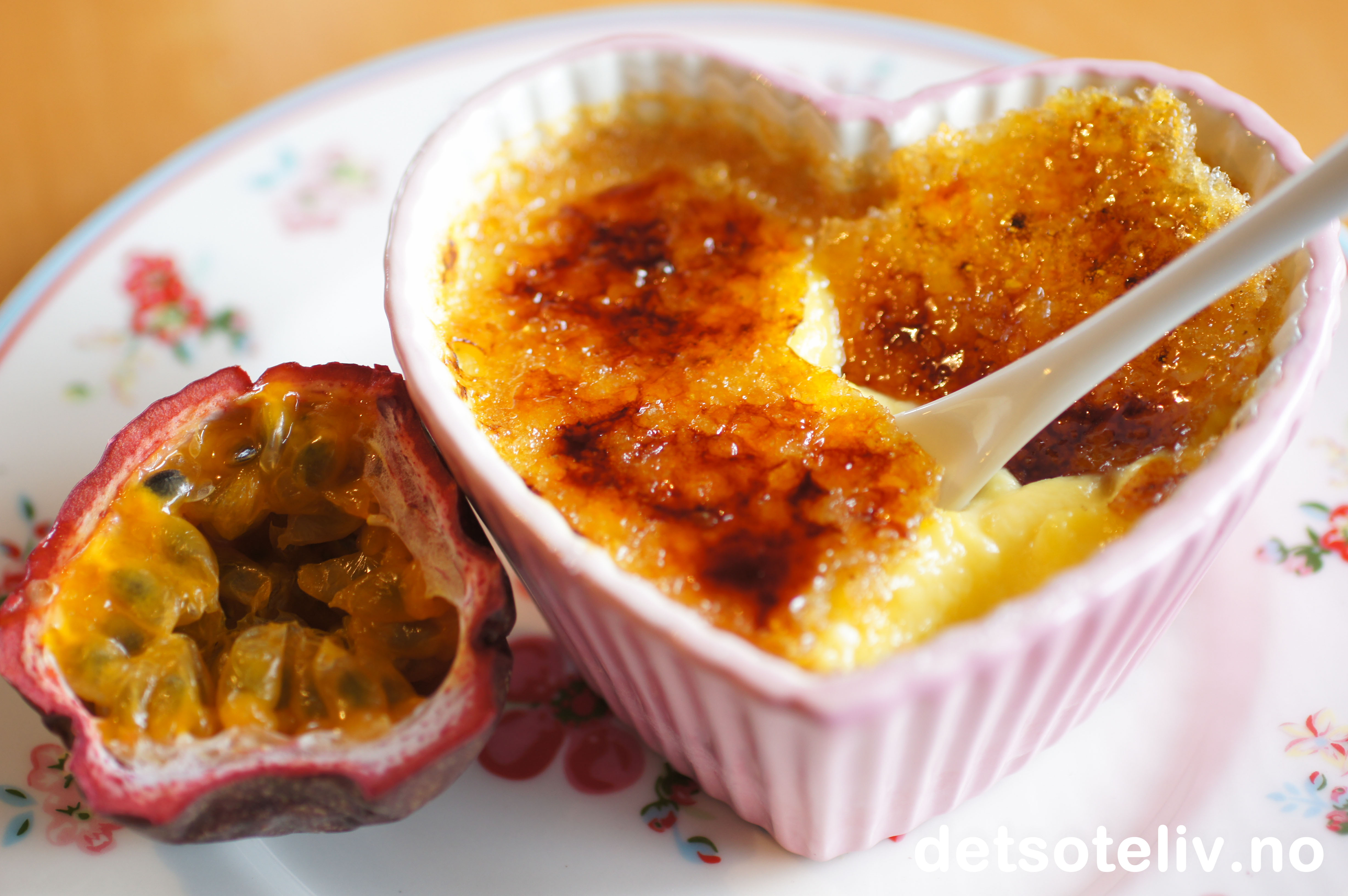 Og husk at en Crème brûlée med pasjonsfrukt vil gjøre den enda nydeligere!