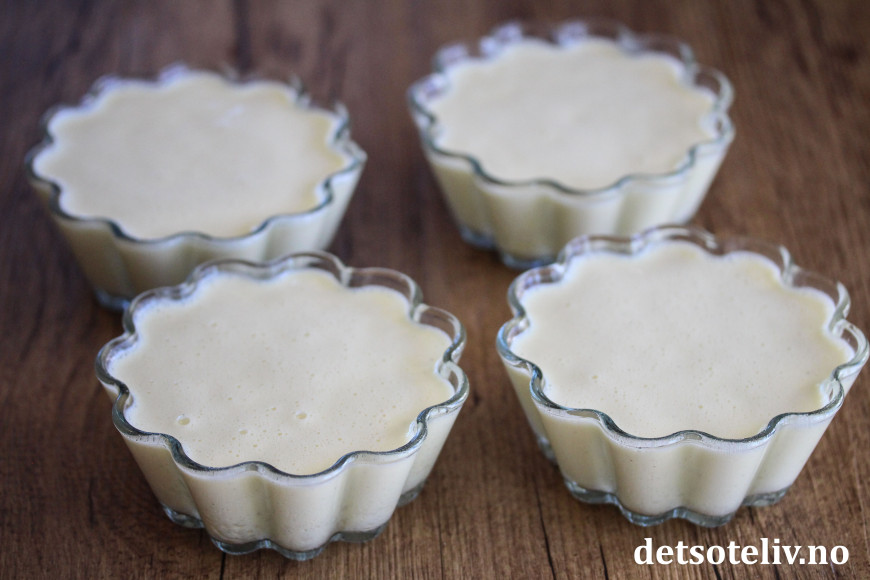 Sett formene i kjøleskapet i minst 4 timer og gjerne over natten. Da vil puddingene ha stivnet i konsistensen.