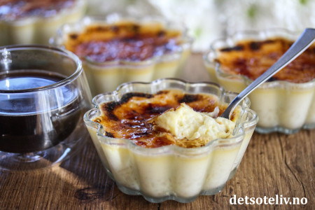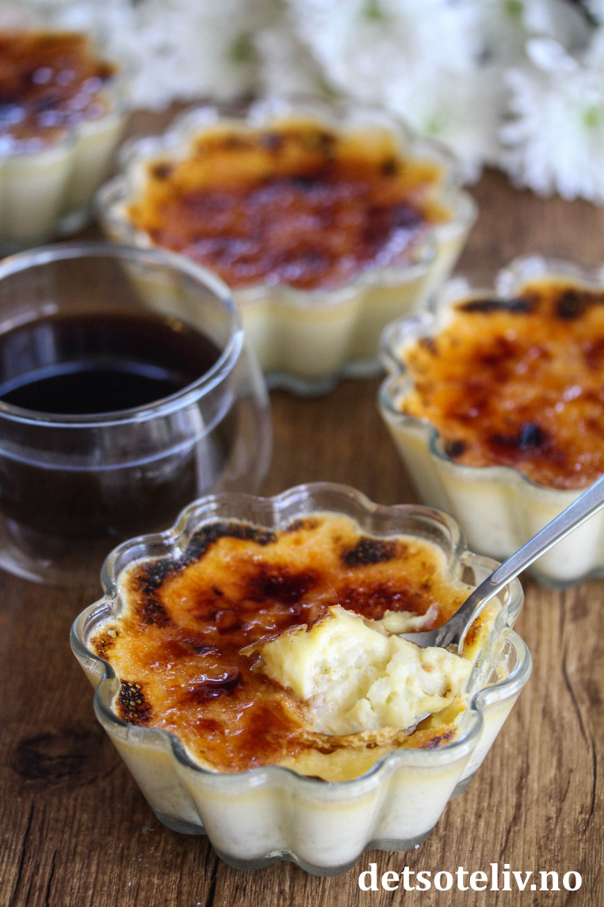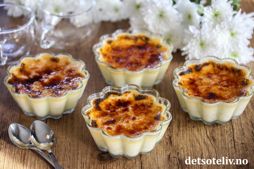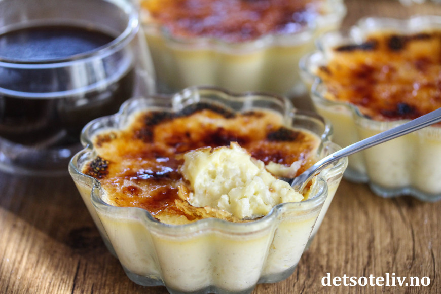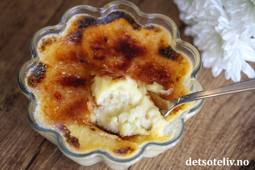 ♥ Gassbrenner fås kjøpt i de fleste velassorterte kjøkkenutstyrsbutikker (husk å kjøpe både brenner og gass til å fylle på brenneren ). Billige varianter fås blant annet kjøpt hos Jernia og Clas Ohlson. Bruker du grillen i ovnen, må du passe nøye på så desserten ikke står så lenge i ovnen at den smelter og sukkeret blir brent. Følg nøye med hele tiden!