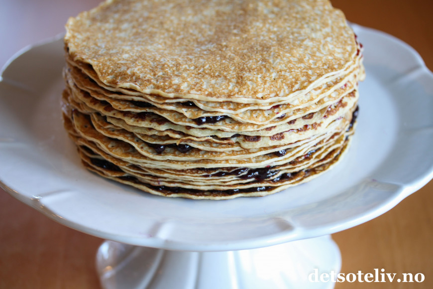 Det blir godt det også! Husk da på å varme pannekakene i forkant av at du stabler dem, så de blir helt myke før du legger dem oppå hverandre.