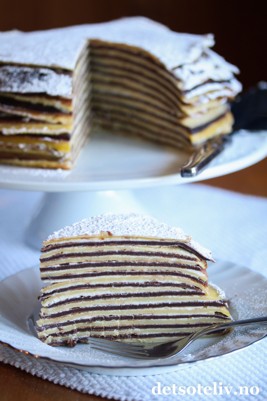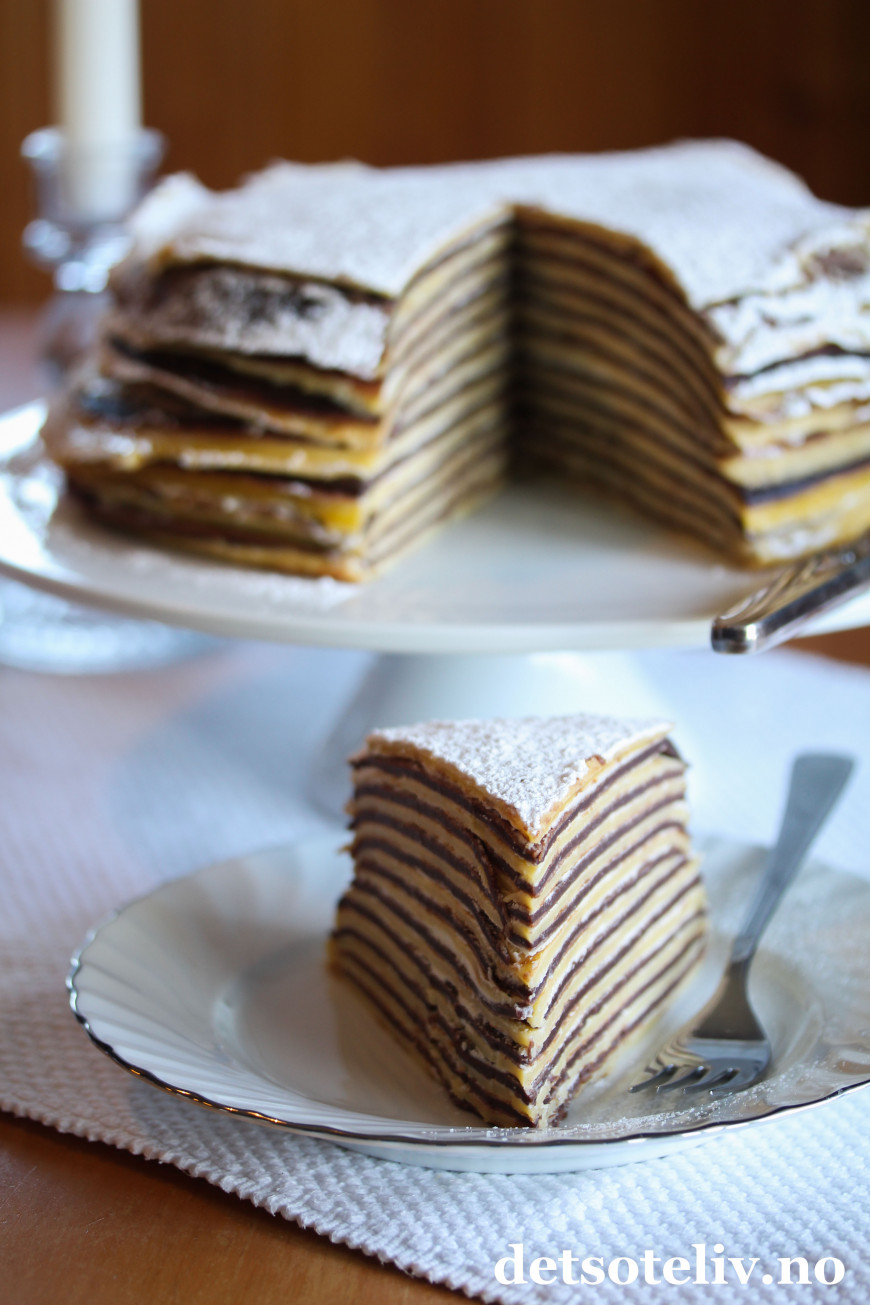 «Gâteau mille crêpes» betyr «kake av tusen pannekaker» på fransk, og dette er noe av det mest trendy på kakefronten for tiden. Pannekake-kaken kan varieres med ulike typer smaker, kremer og toppinger.