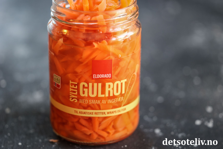 ♥ Du får også kjøpt syltede gulrøtter, syltet ingefær og sesamfrø.