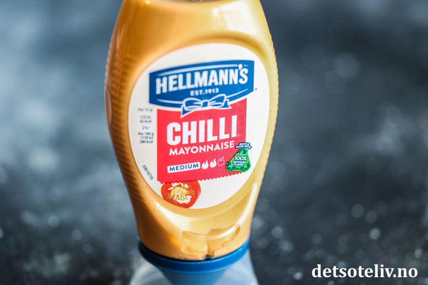 ♥ Wasabimajones og chilimajones fås kjøpt i flere forskjellige merker i de fleste matbutikker. Du kan alternativt blande majones med henholdsvis wasabi og med sriracha for å lage egne varianter.