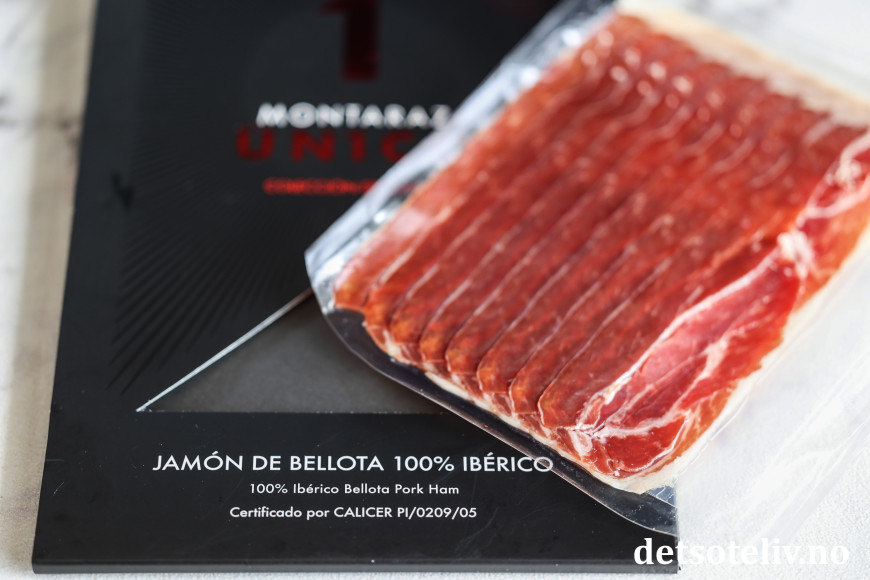 Jámon Ibérico de Bellota er en spansk delikatesse og regnes å være en av verdens beste skinker! Skinken er mørkerød i fargen, og kommer fra sorte, frittgående griser med sorte klover ("sorte klover" heter "pata negra" på spansk, som disse grisene derfor kalles).