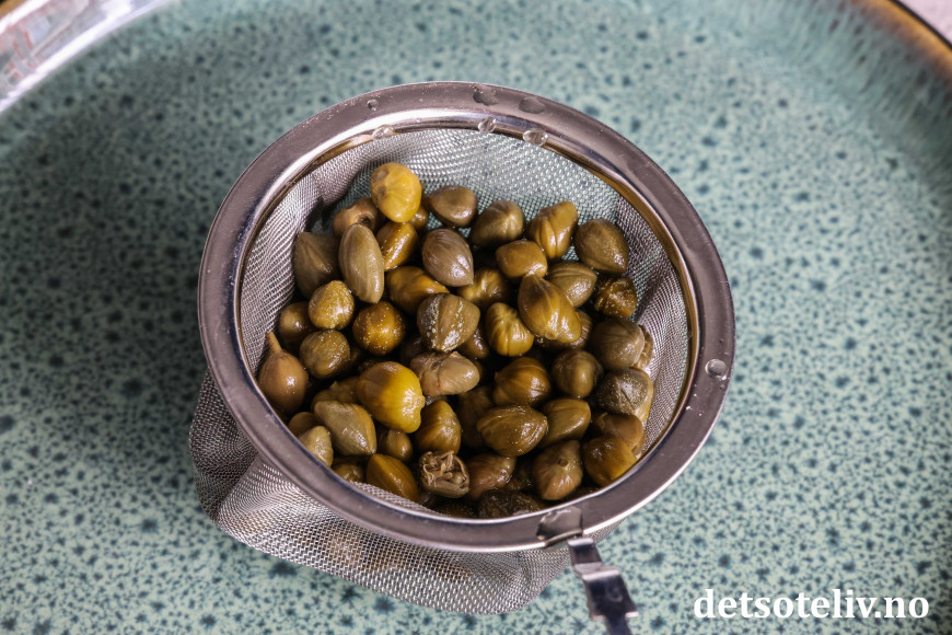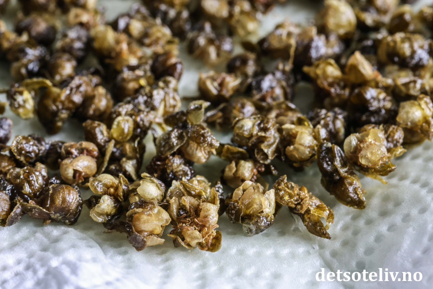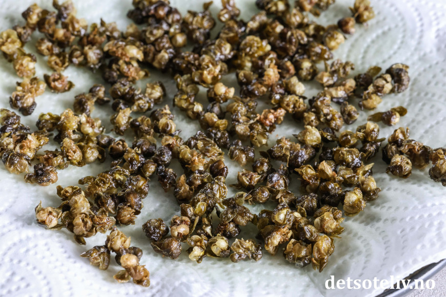 Friterte kapers smaker helt annerledes enn vanlige kapers. Anbefaler deg å teste det ut!