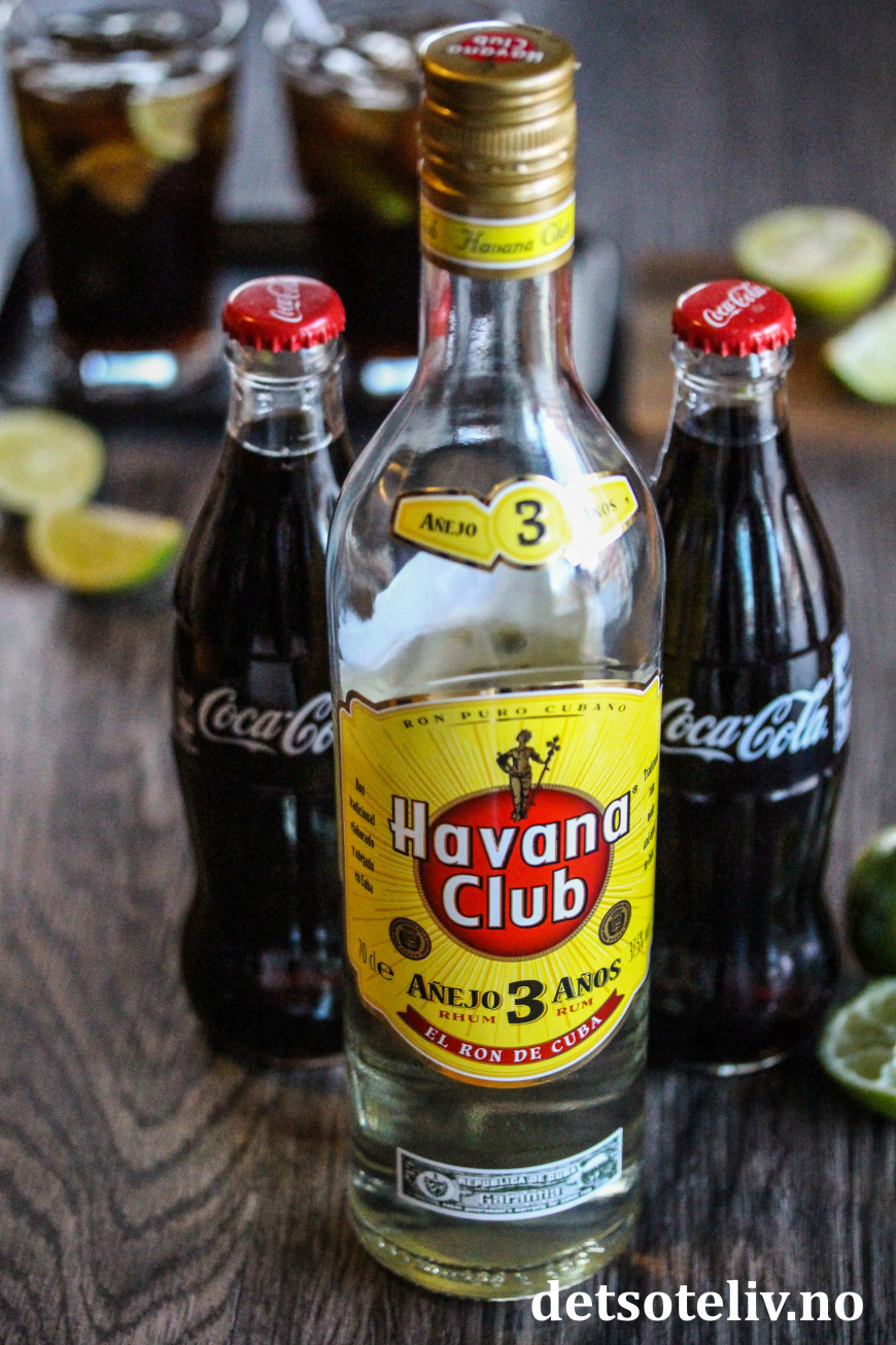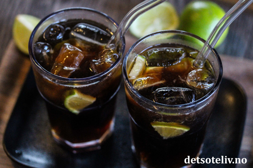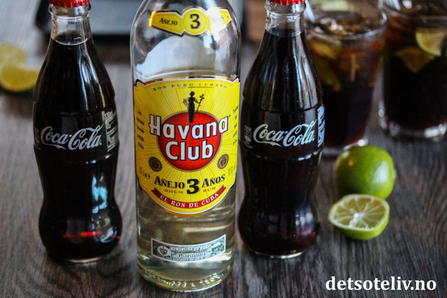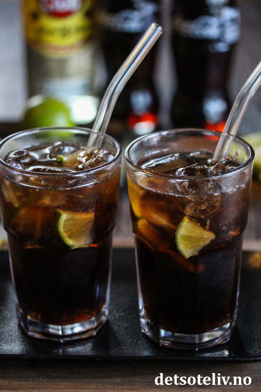 Det trengs bare rom, cola og lime til denne drinken - og isbiter såklart!