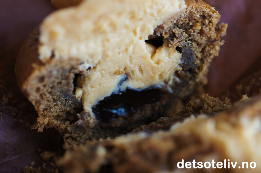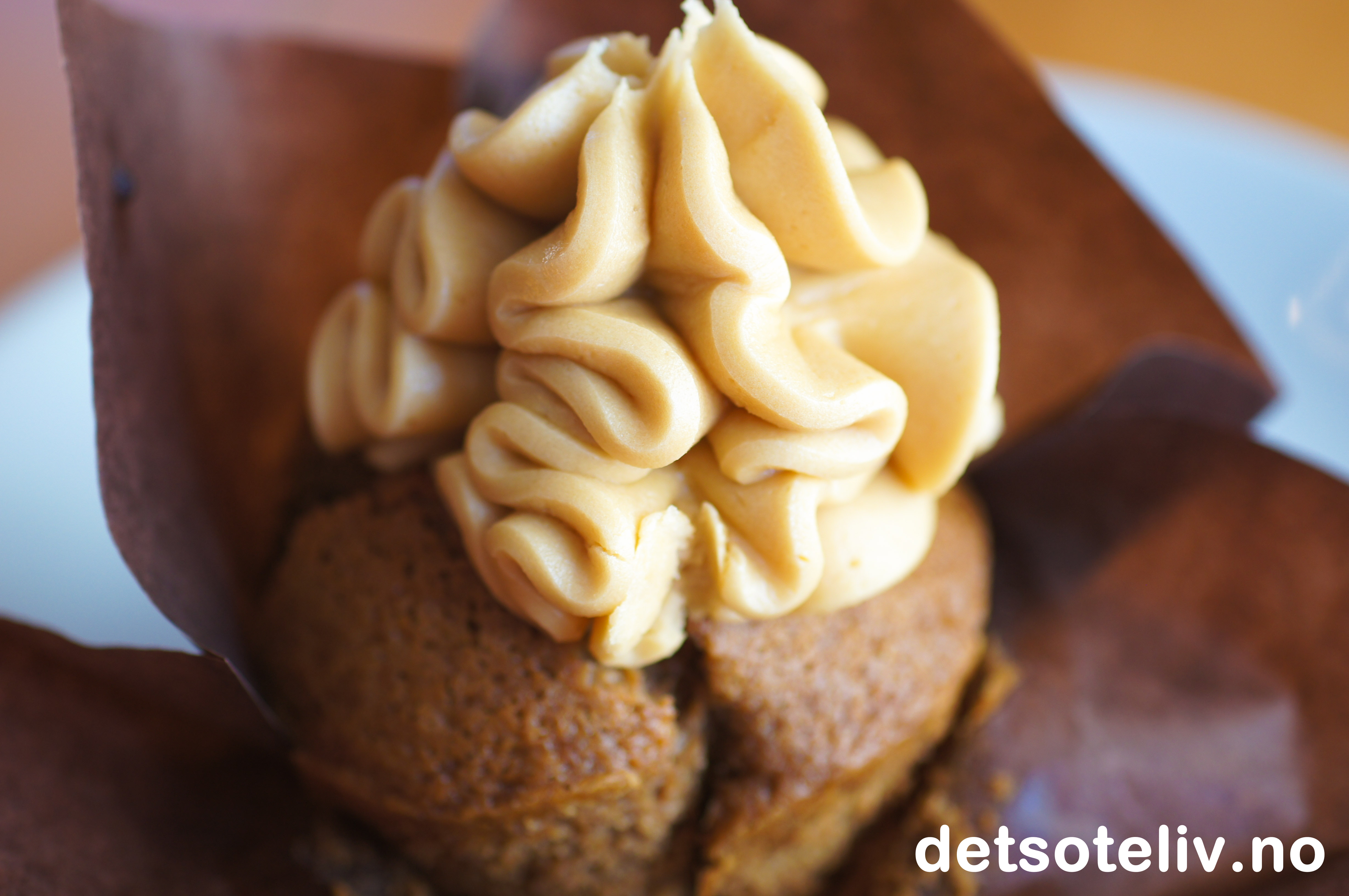 ♥ Vær nøye med å avkjøle muffinsene helt før du pynter dem med kaffekremen, ellers smelter kremen.