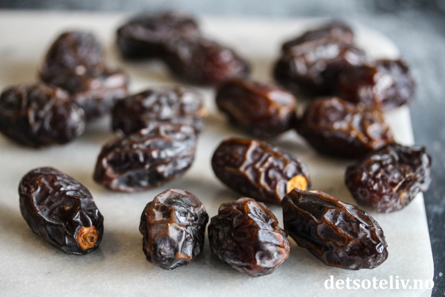 ♥ Bruk helst store, bløte dadler som selges i løsvekt (Medjool dadler).