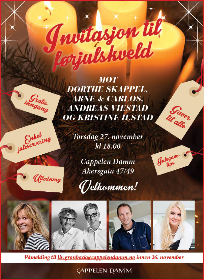 Håper dere som bor i Oslo også har meldt dere på førjulsarrangementet hos Cappelen Damm på torsdag kl 18.00 - 21.00, hvor blant annet jeg er med og blir intervjuet og signerer Det søte livs jubileumsbok.