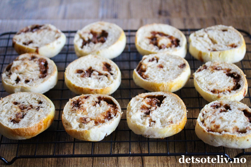 Legg bollene på bakepapirdekkede stekeplater. La dem heve lunt i ca. 40 minutter.