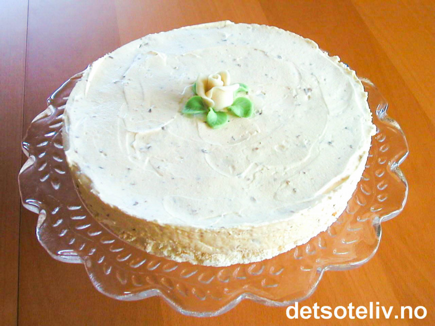P.S. Jeg bruker heller ikke marsipanrose, men lager 'pikekyss' av litt av marengsmassen, og pynter kaken med dem rett før servering.